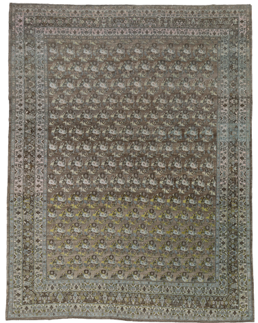 Early 20th century Persian bidjar rug with an all over floral design in accents in pink and chartreuse on a brown color ground