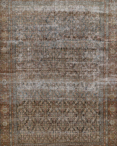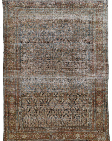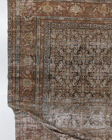 This intricately-woven early 20th century Persian Mahal features a captivating herati pattern, with a range of deep, earthy hues highly prized by collectors and interior designers.
