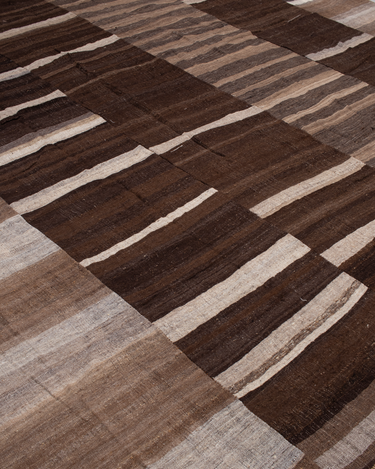 This Antique Persian Wool Patchwork Kilim Rug boasts a fabulous edgy yet timeless aesthetic. Handwoven from soft wool.