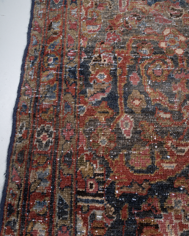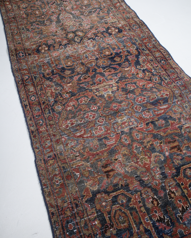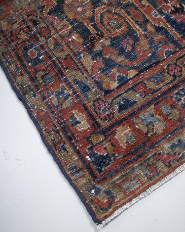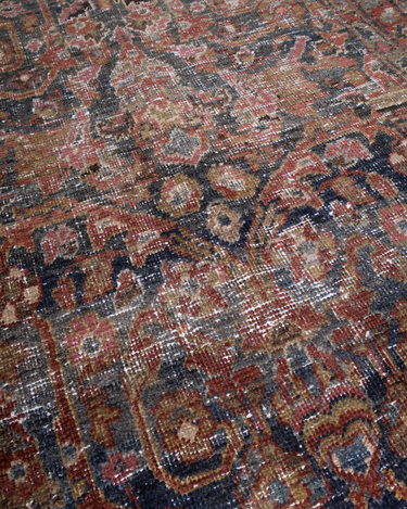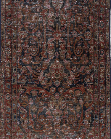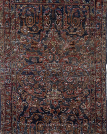 Rich tones with the highly desirable mustafi motif that features scrolling foliage and vines.
