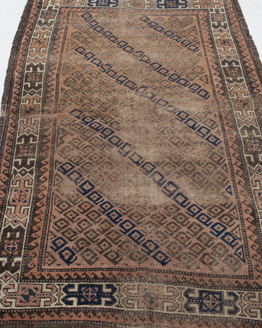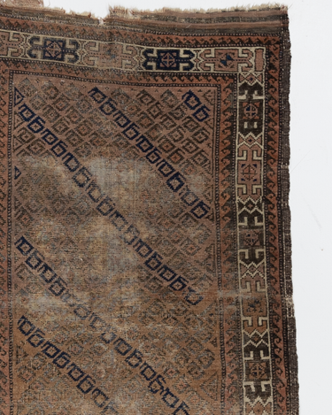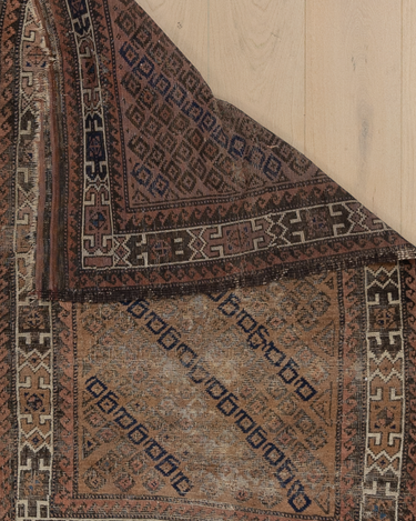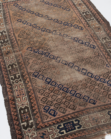 Worn but beautiful. Can be used on the floor in a low traffic area or repurposed as fabric or art in a frame.