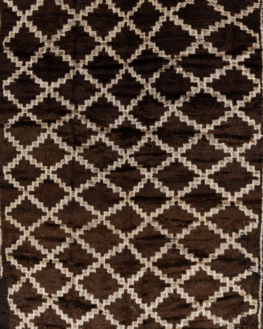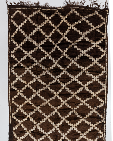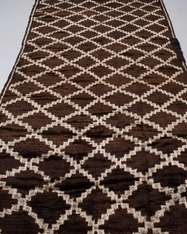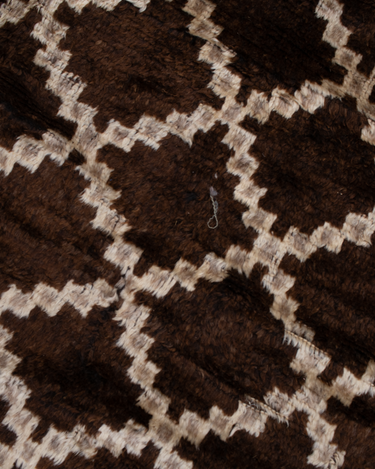 Authentic Moroccan Taznakht rug that was an important commissioned piece for a wealthy family. The original repair was left as is to preserve the historical integrity of the piece. A one of a kind and difficult to find rug. Highly sought after.