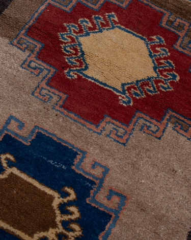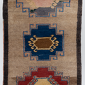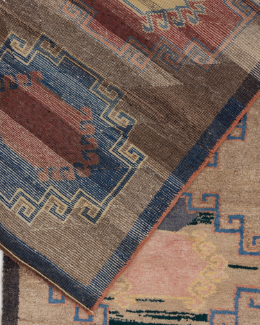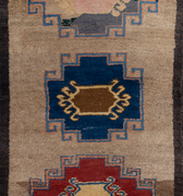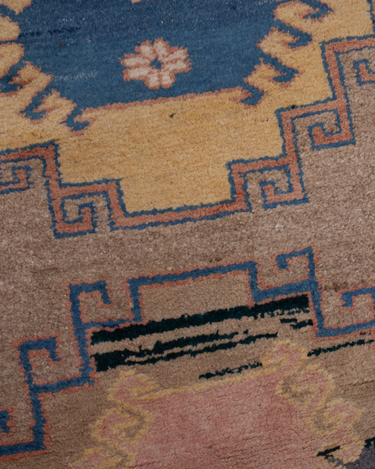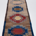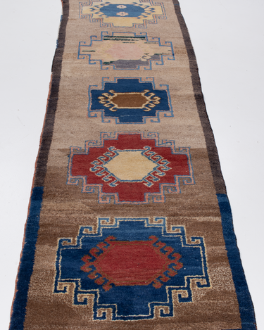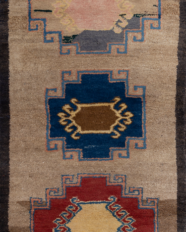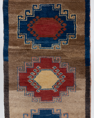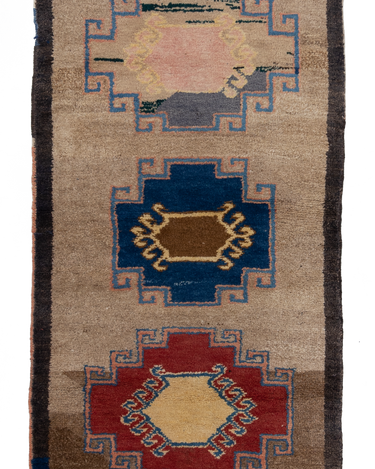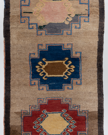 Unique vintage gabbed runner with a lovely natural camel feel and varying medallions that are woven so that each is different and special in its own way. Captivating in its simplicity that allows the high quality wool to shine.