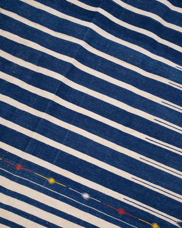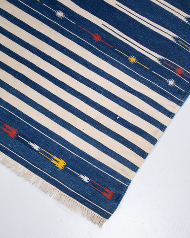 Antique Indian dhurrie that is timeless. Staining typical to age.