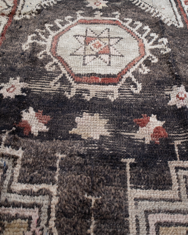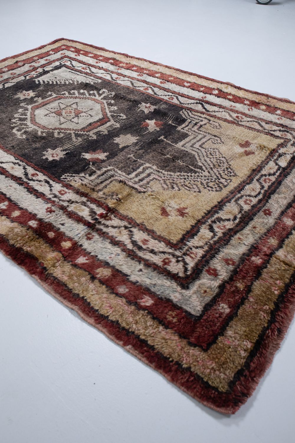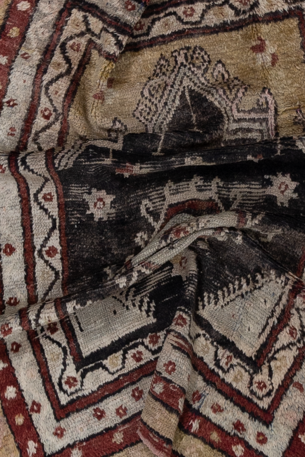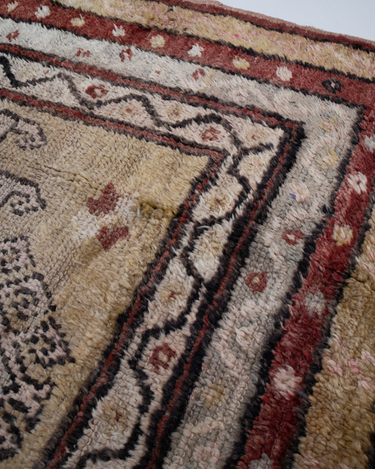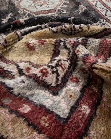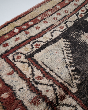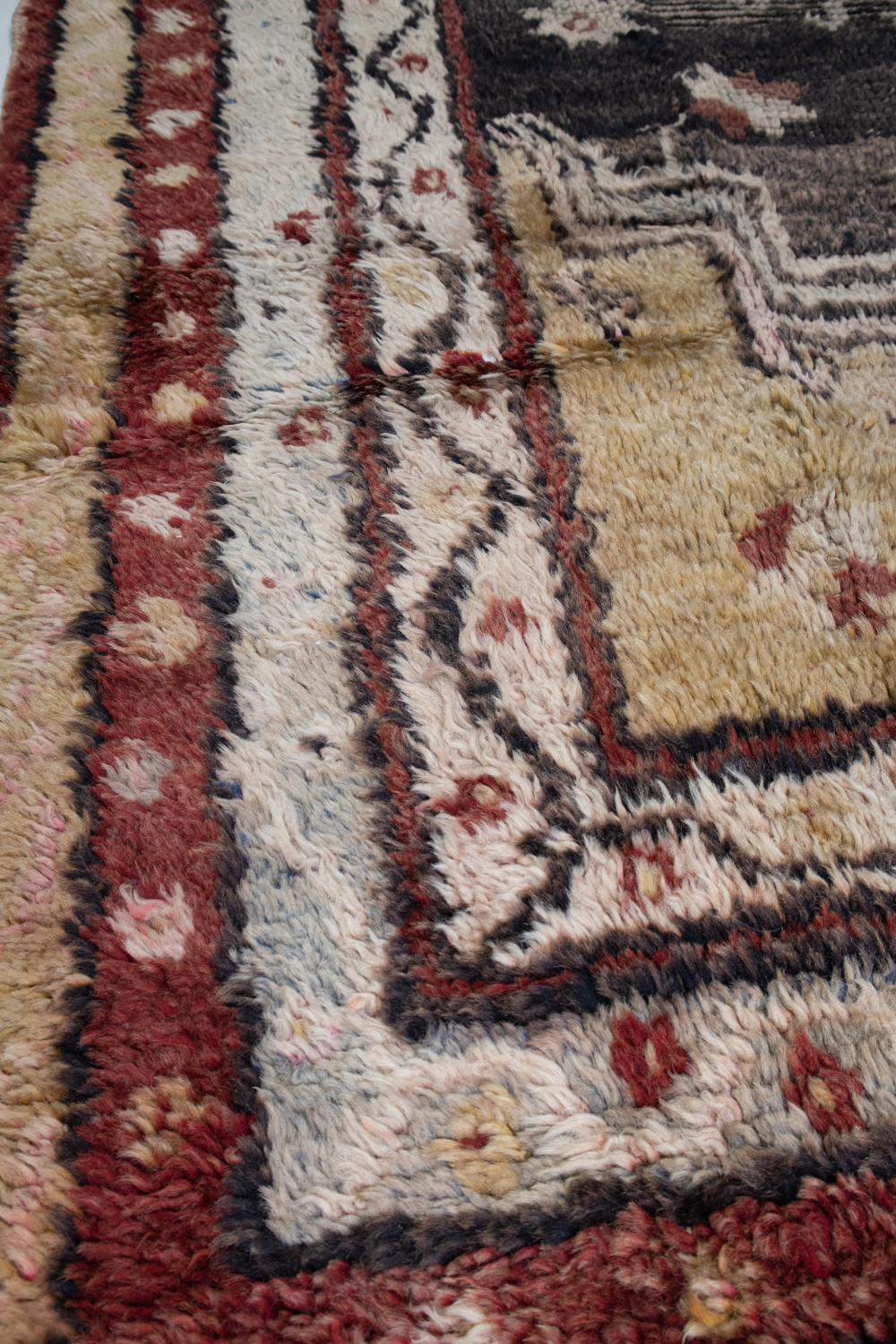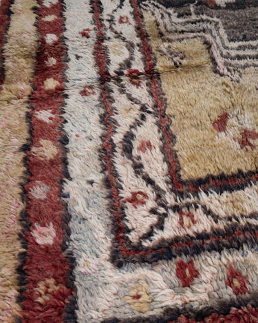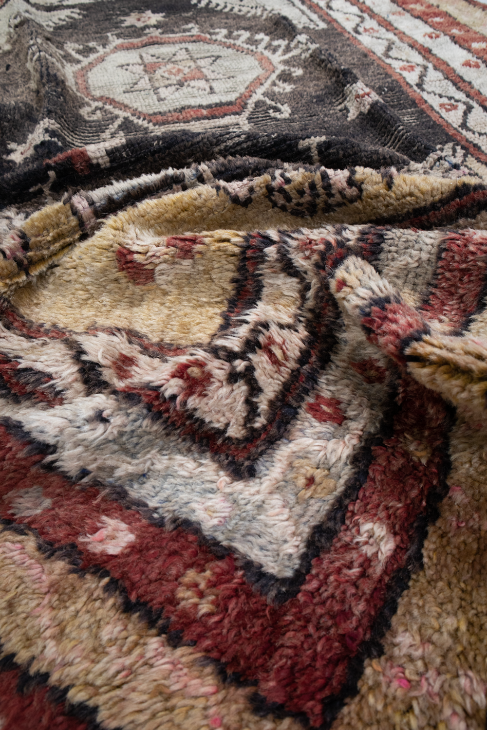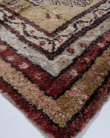 Full pile vintage Tulu with a unique pattern and color way. Very soft underfoot.