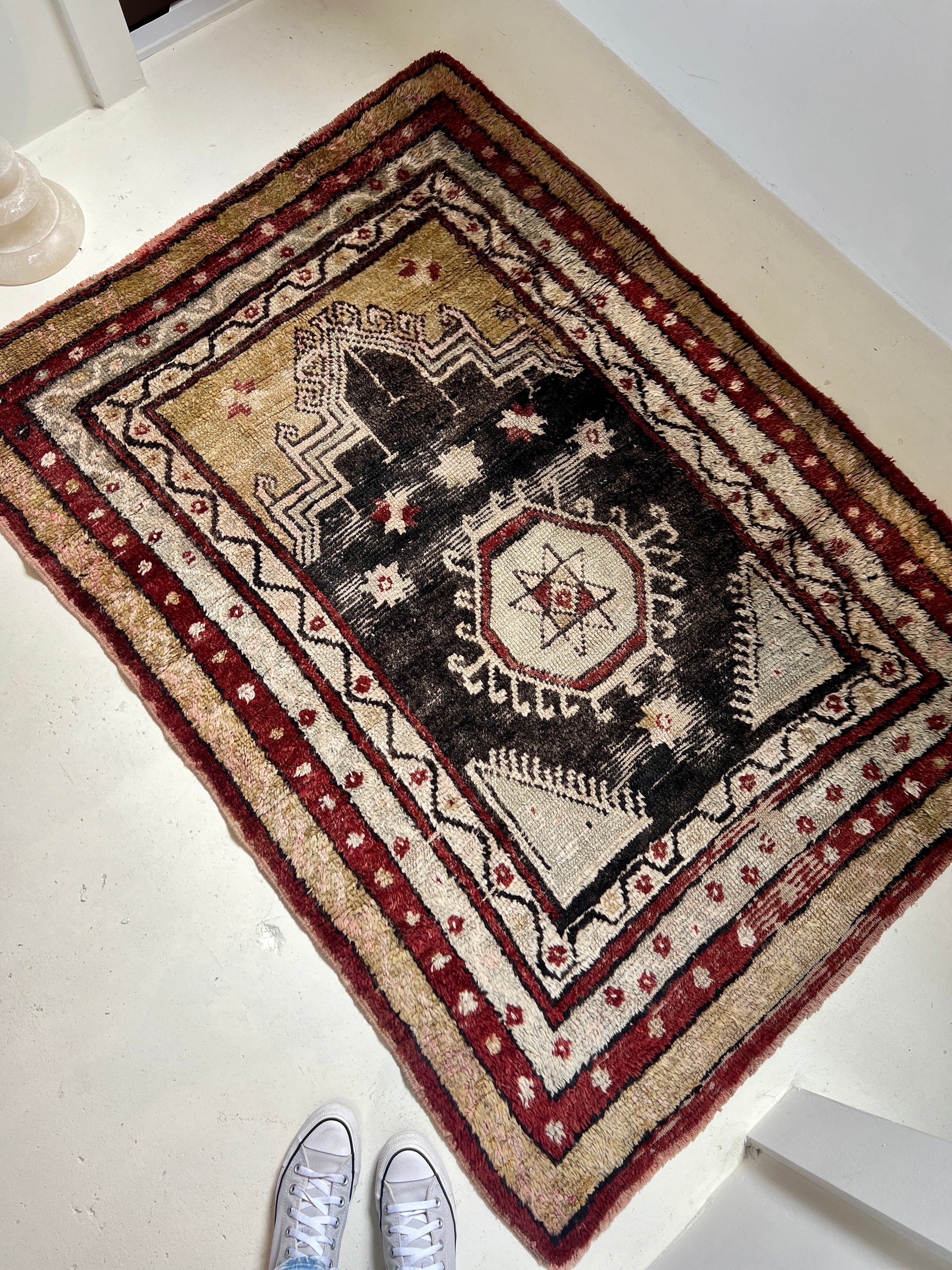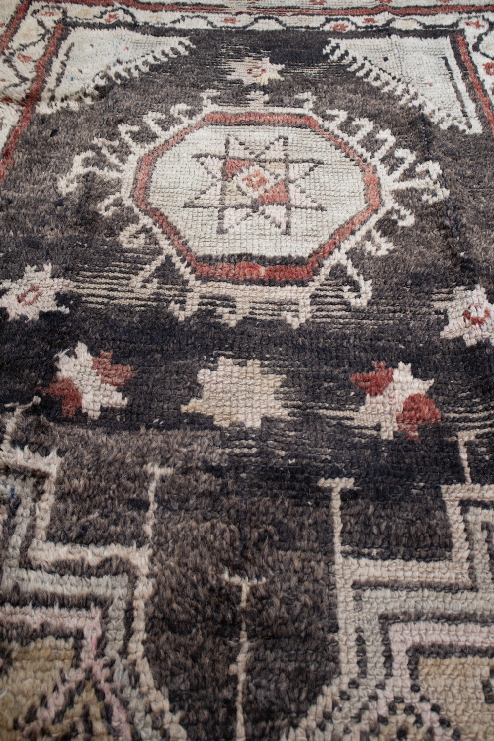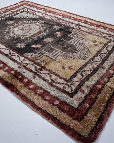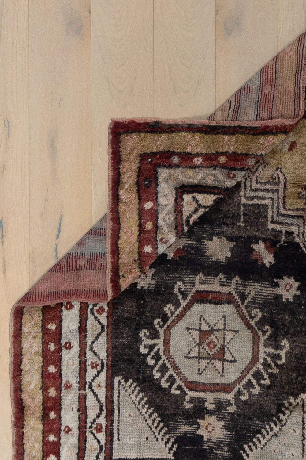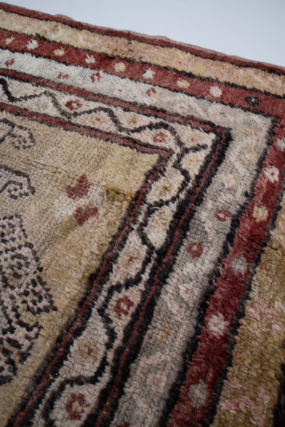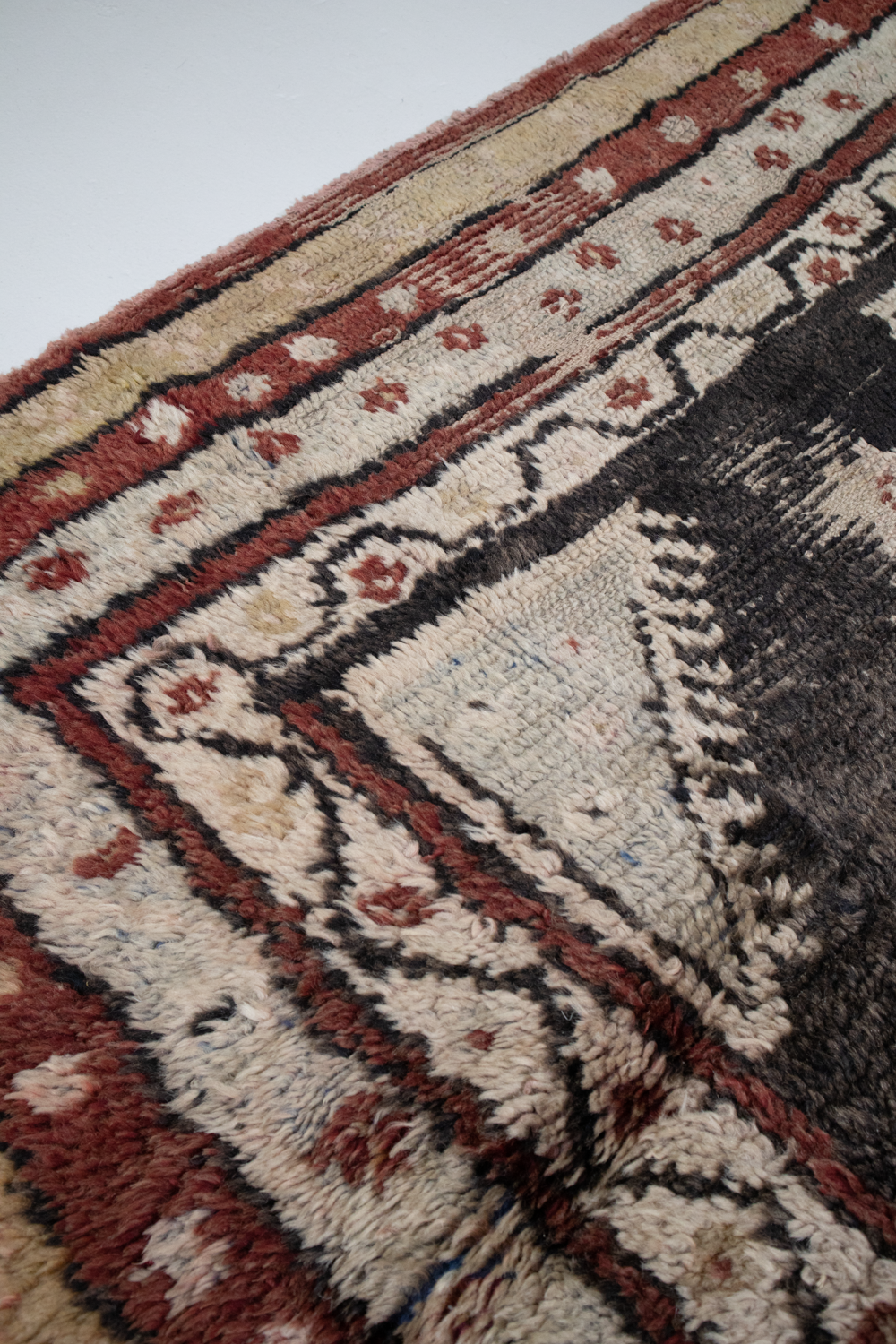 Full pile vintage Tulu with a unique pattern and color way. Very soft underfoot.