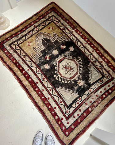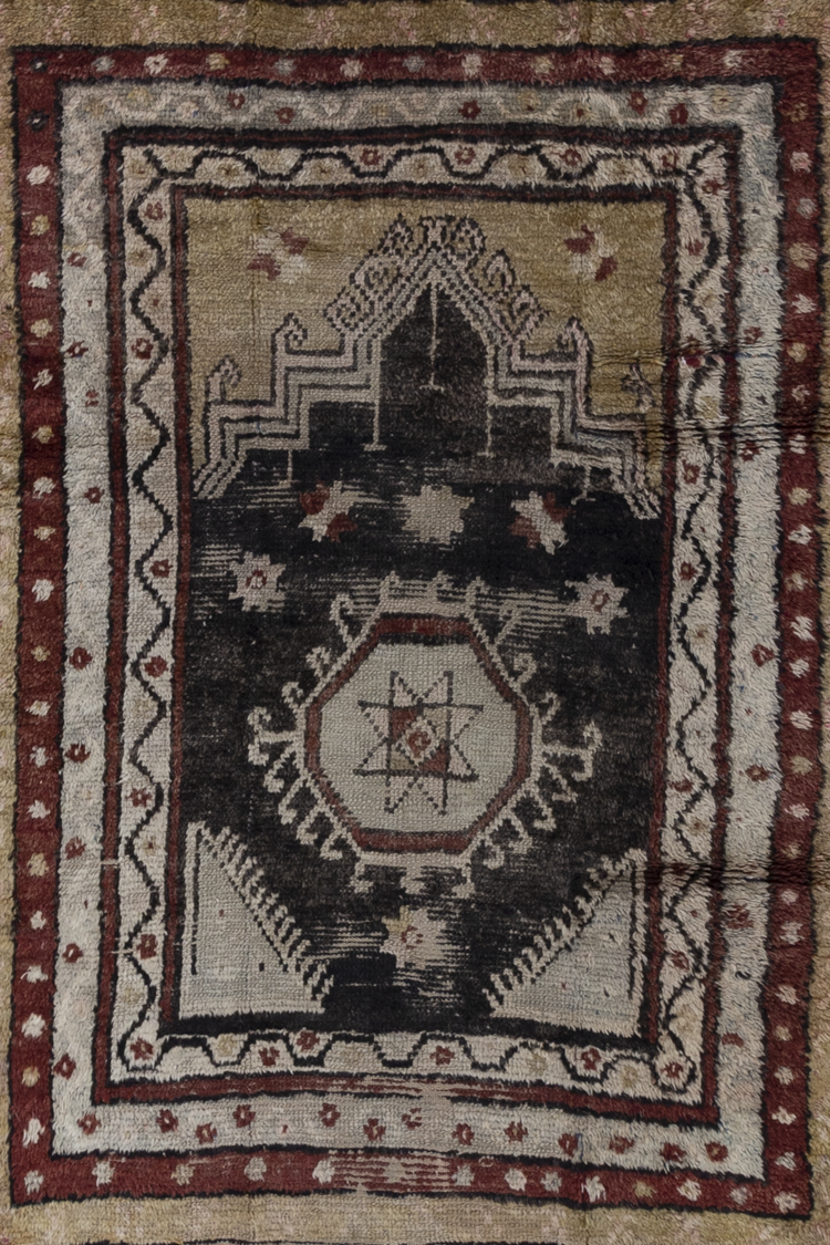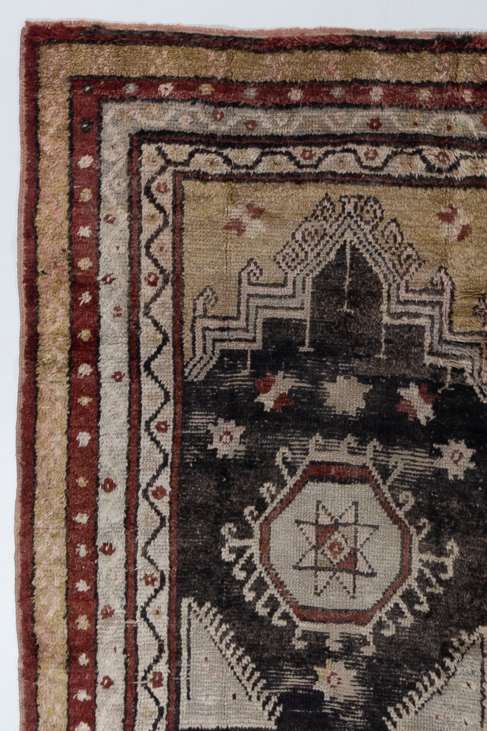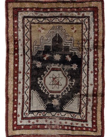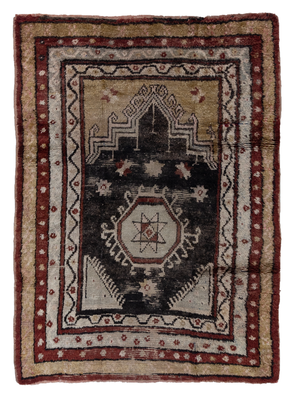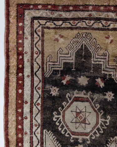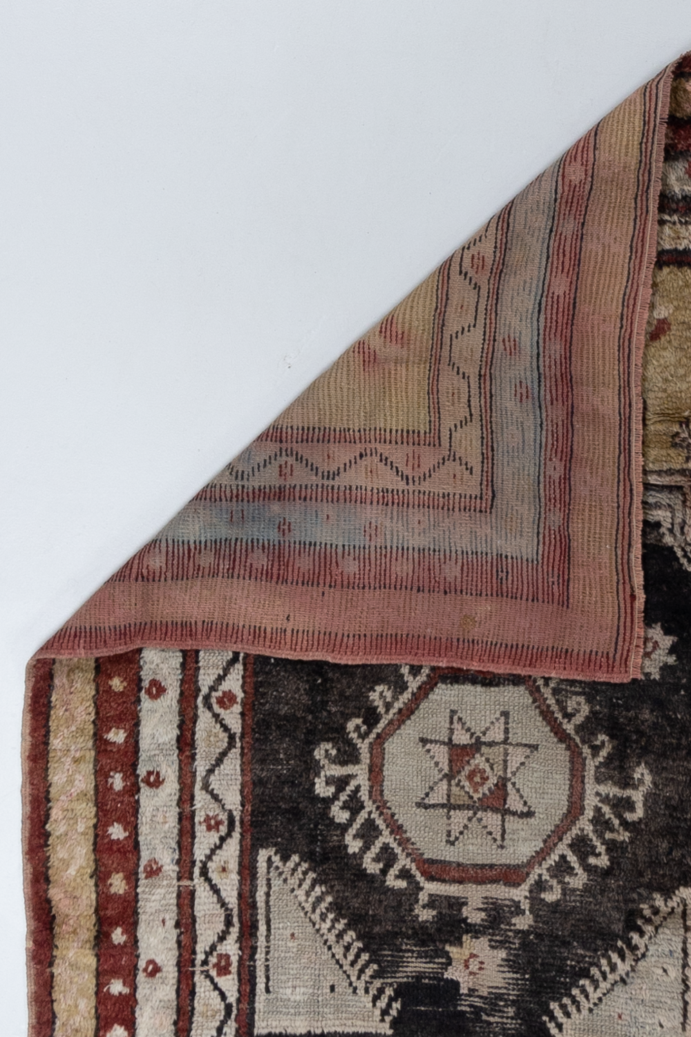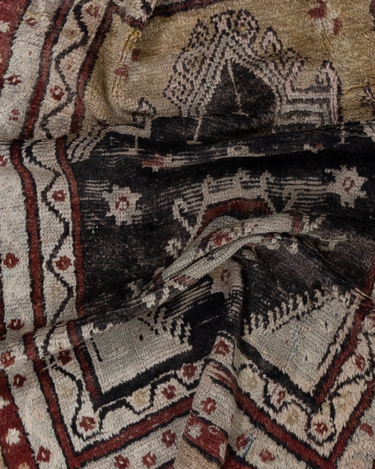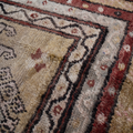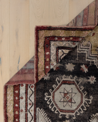 Full pile vintage Tulu with a unique pattern and color way. Very soft underfoot.