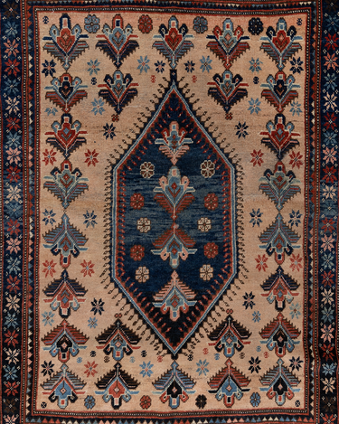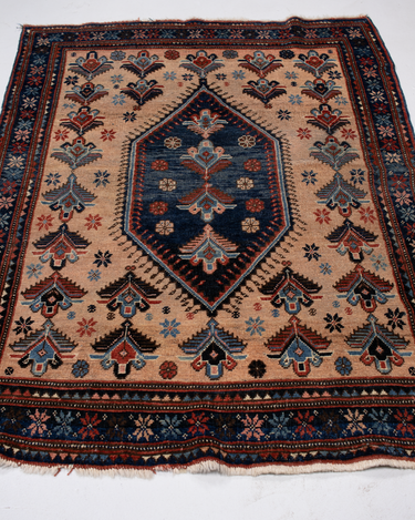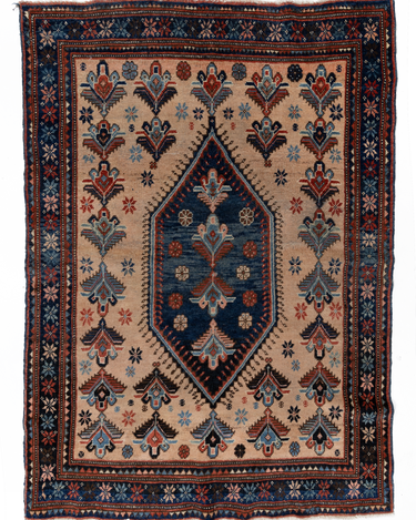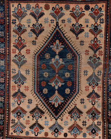 Beautiful original colors with a unique warm toned field. Woven in the second quarter of the 20th century. Full original pile.