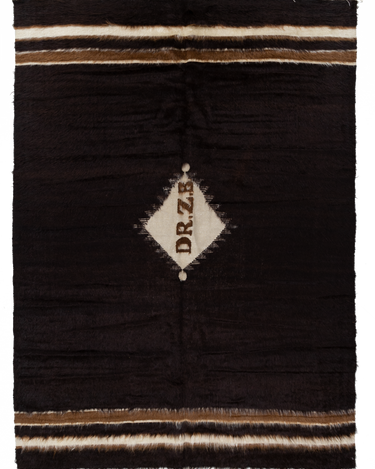 Unique initialed Mohair rug. Mohair rugs were used by nomadic and tribal communities in Turkey as portable floor coverings that could be easily rolled up and carried as families moved from one location to another. These rugs provided warmth, comfort, and a familiar piece of home as these communities traveled and lived a nomadic lifestyle.