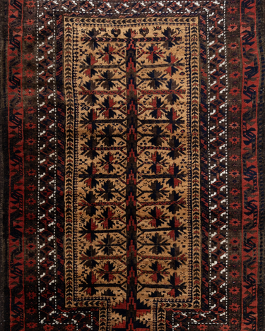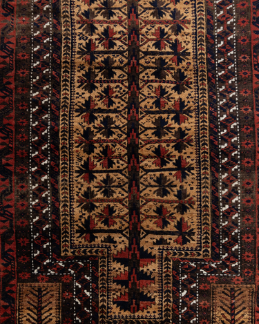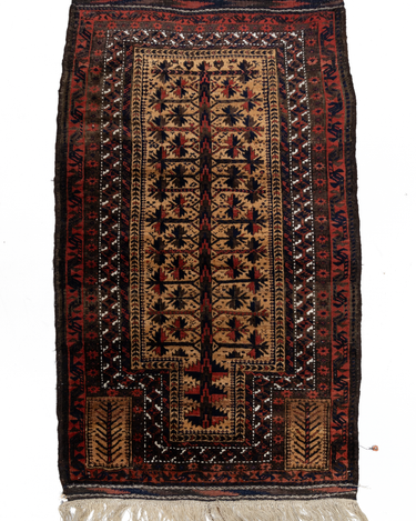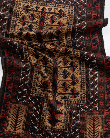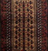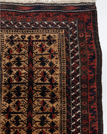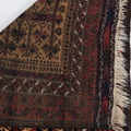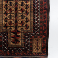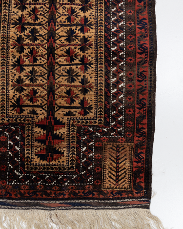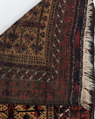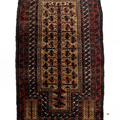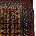 Handwoven in the 1880’s, this original condition Baluch rug features a soft wool pile and lovely long fringe. The colors are deep and mysterious with a gorgeous silky sheen. A lovely collector’s piece.