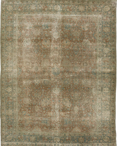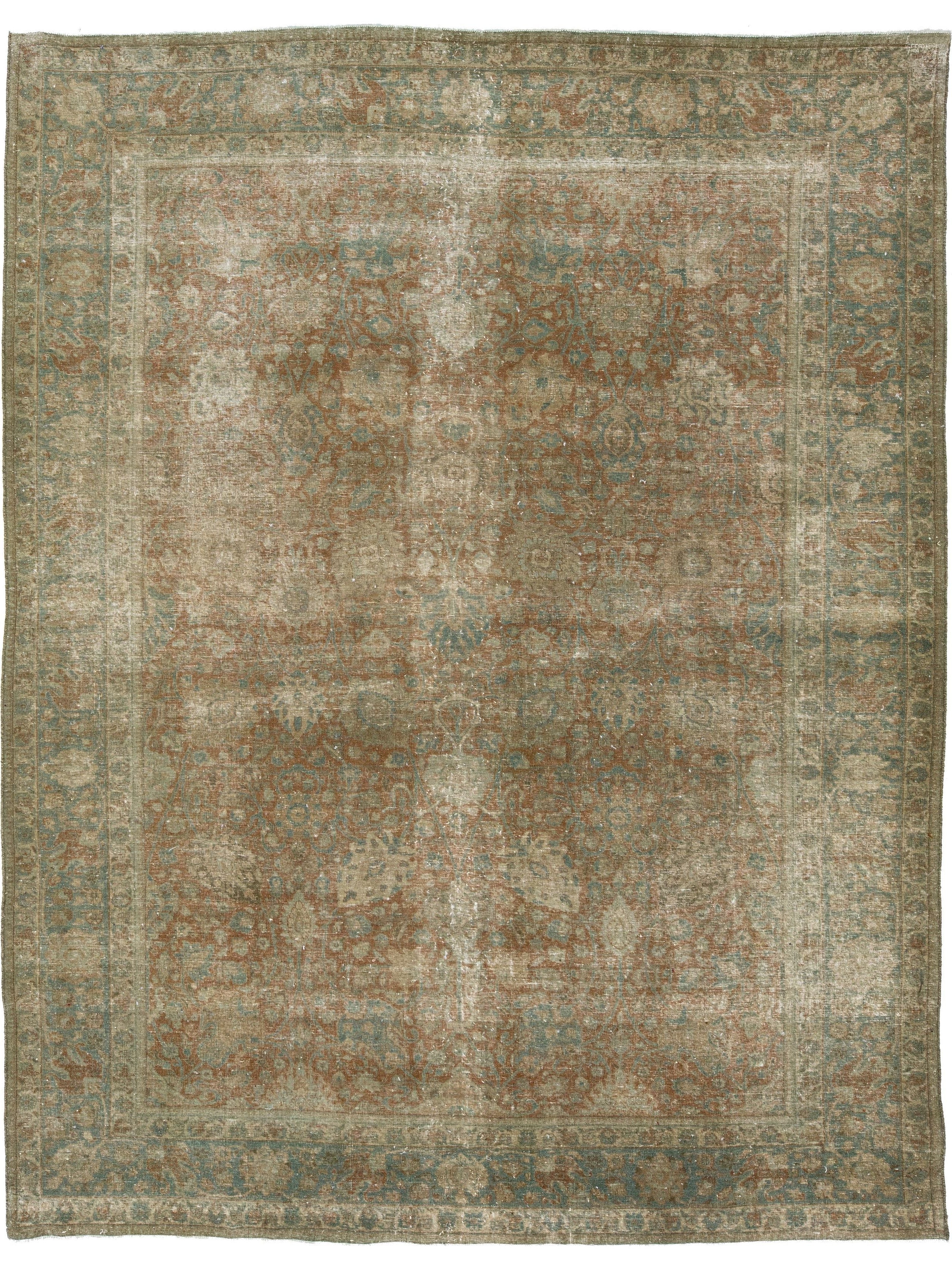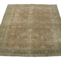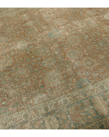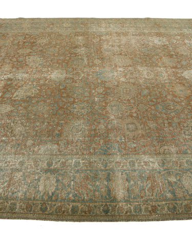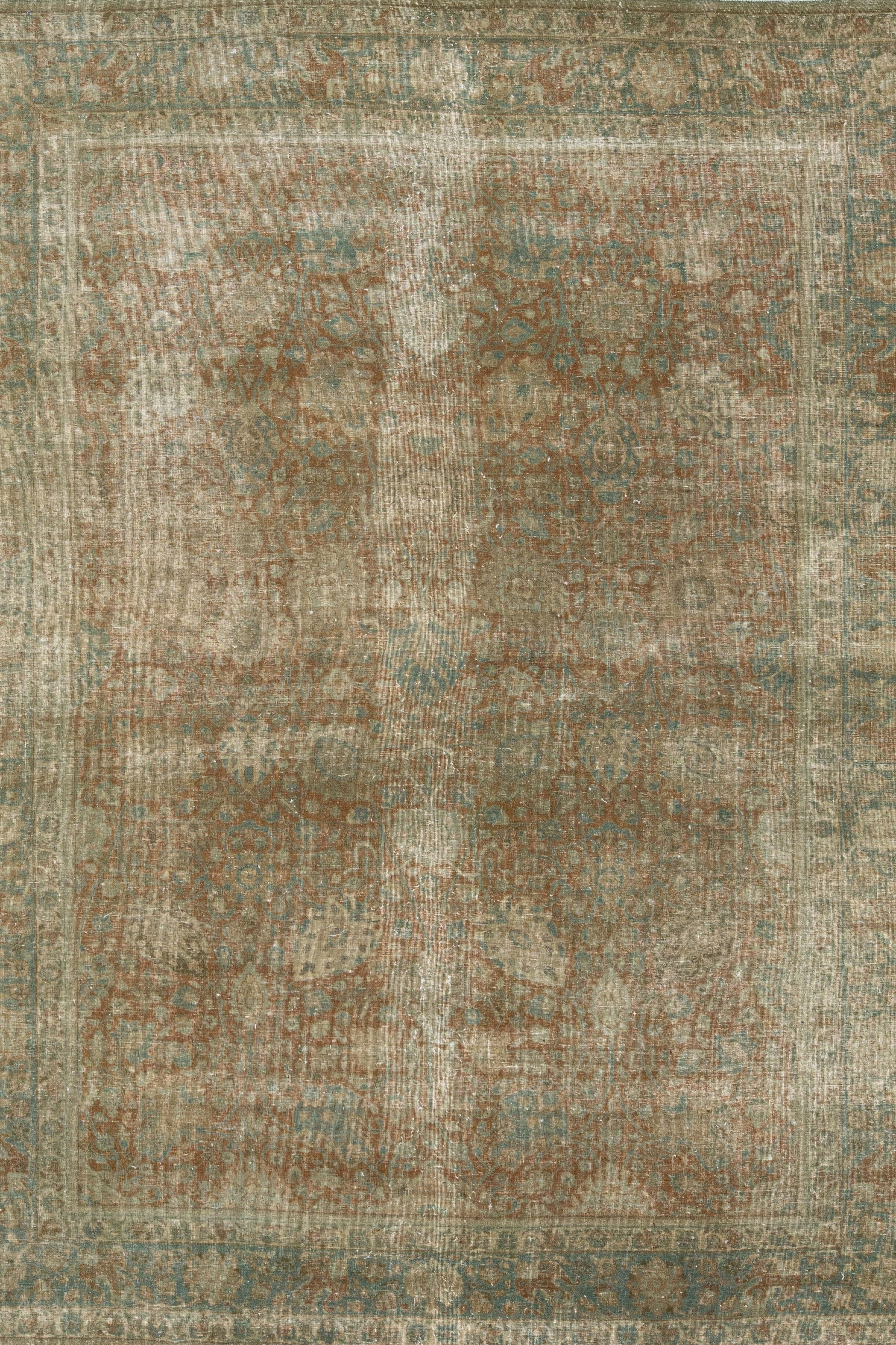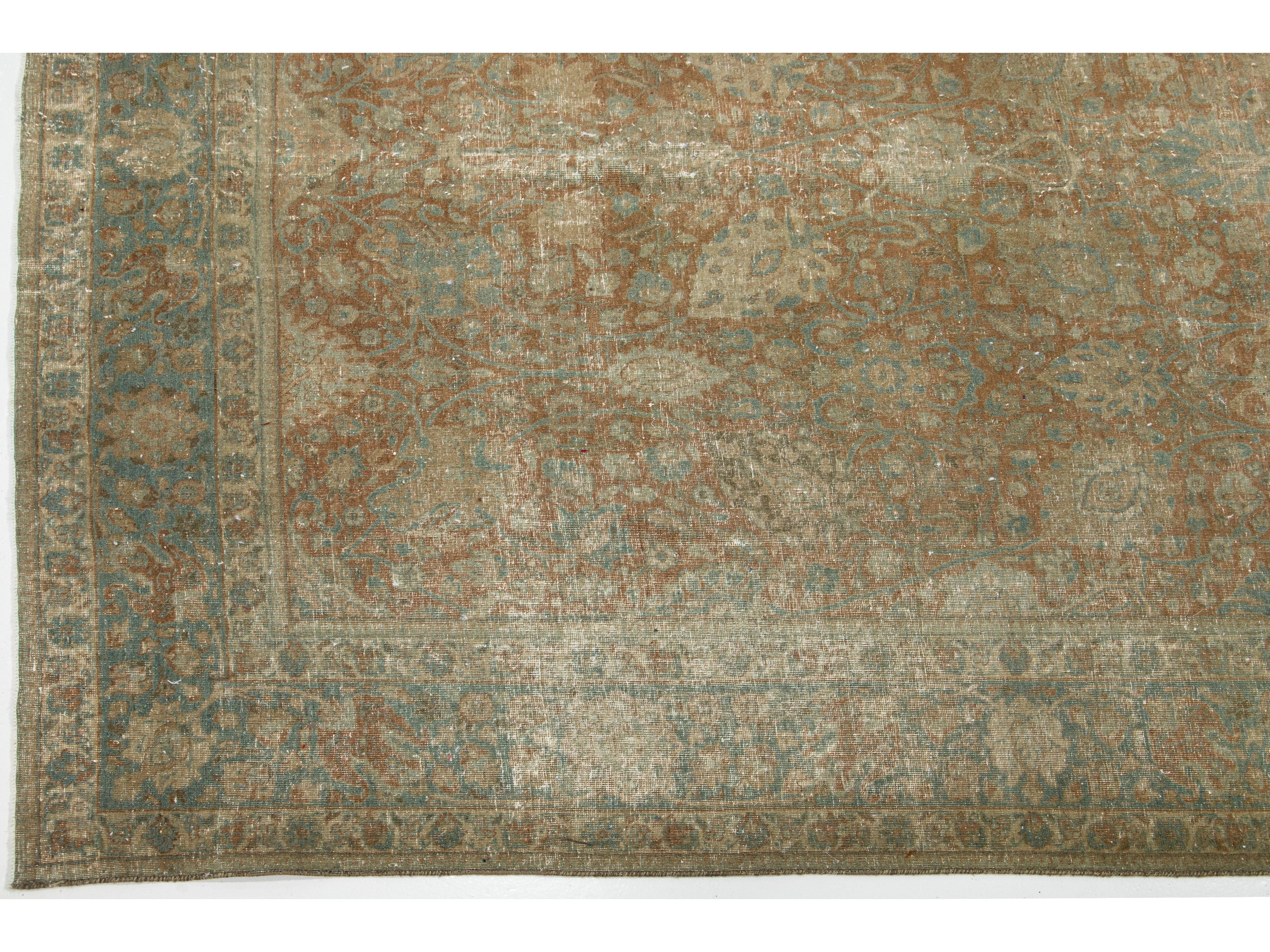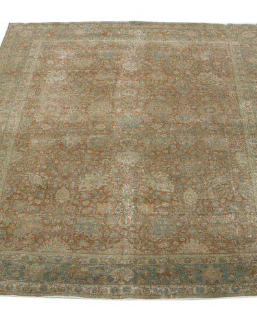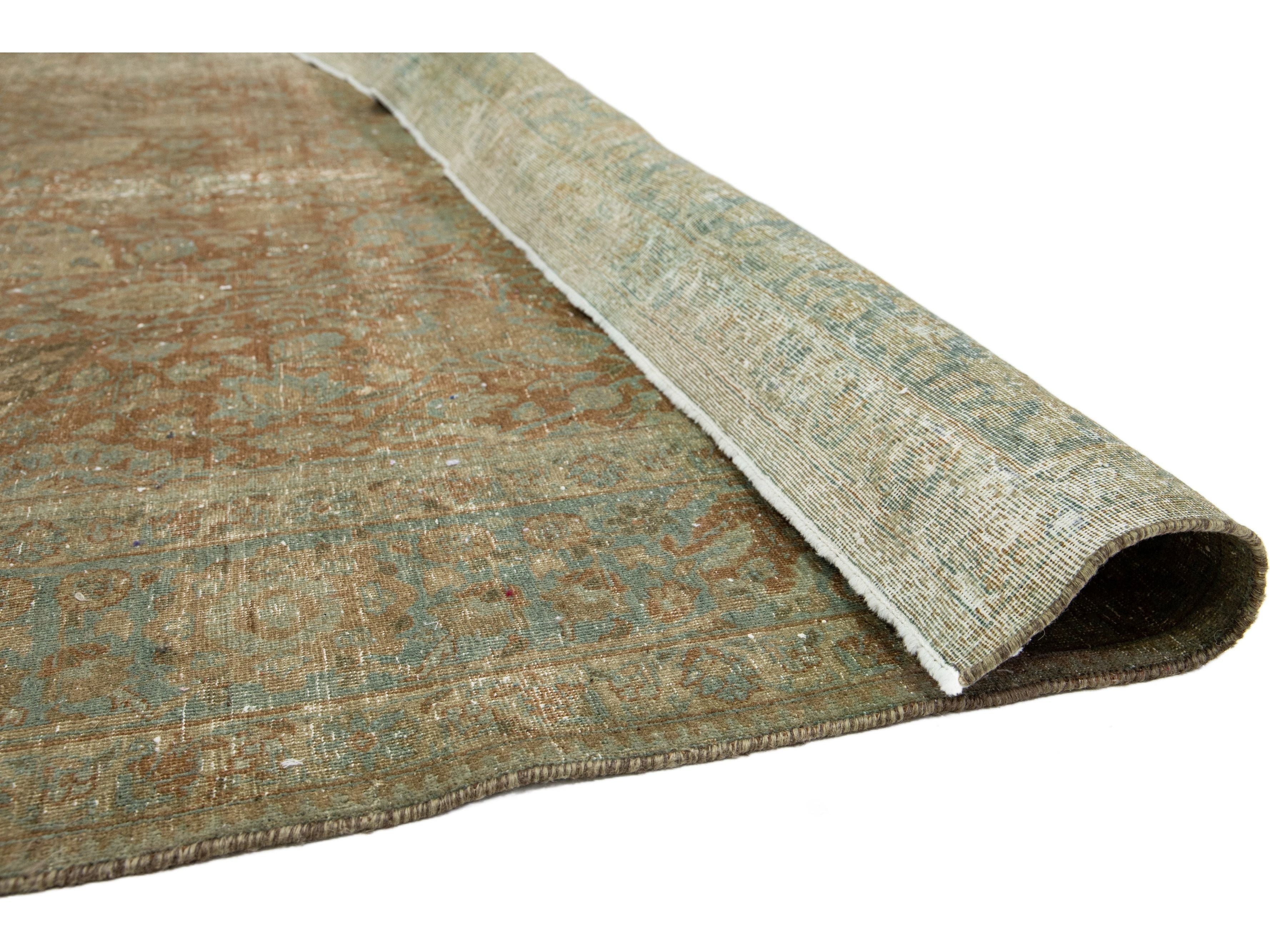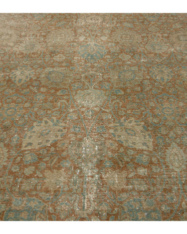 Indulge in the exquisite craftsmanship of this Persian Tabriz wool rug, adorned with a timeless floral motif. A rich brown background with hints of blue and beige make up this opulent masterpiece.