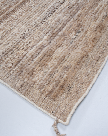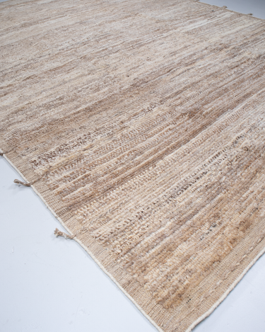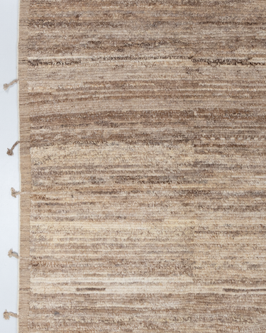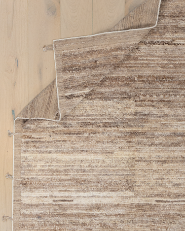 The Valerie Rug, a uniquely tonal rug, is an effortless emanation of sophisticated cool. Made from 100% New Zealand wool and designed with a blend of neutral colors, the nuanced shades of brown and beige result in a texture that is uniquely rich and unparalleled in its tactile elegance. This rug was hand woven in Afghanistan and embodies centuries of weaving traditions.
