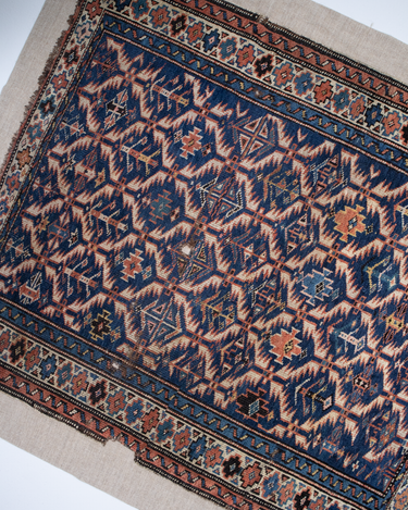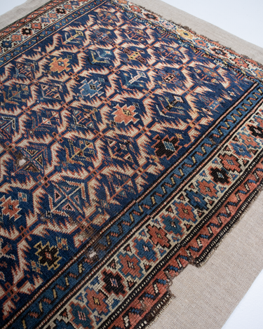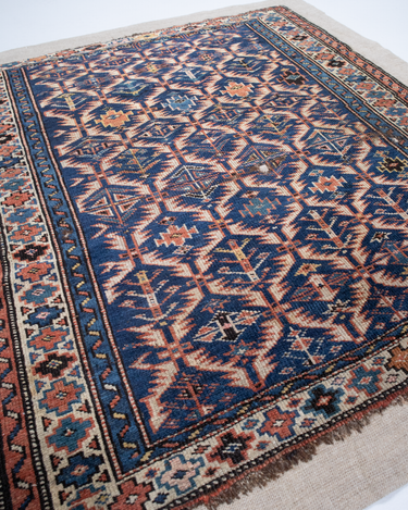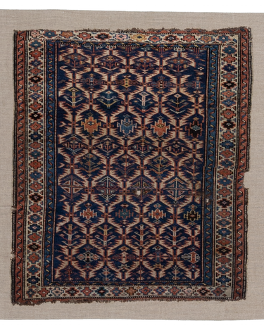 Mid 19th Century Caucasian Rug stitched on a fabric textile.