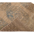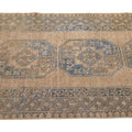 Beautiful antique Turkmen hand-knotted wool rug with a brown color field. This piece has blue accents in an all-over Gul pattern design.