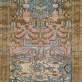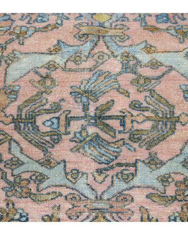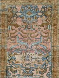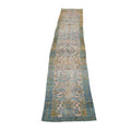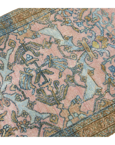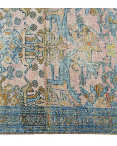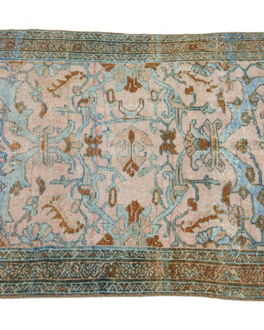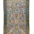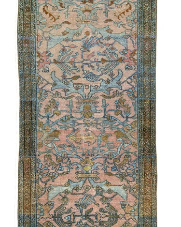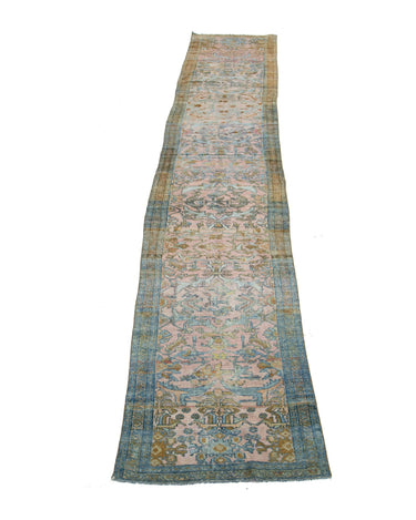 Beautiful antique Lilihan hand-knotted wool with a blue field. This Persian has pink borders with an all-over floral pattern design in brown and beige accents. This rug measures 3'1" x 15'9".