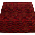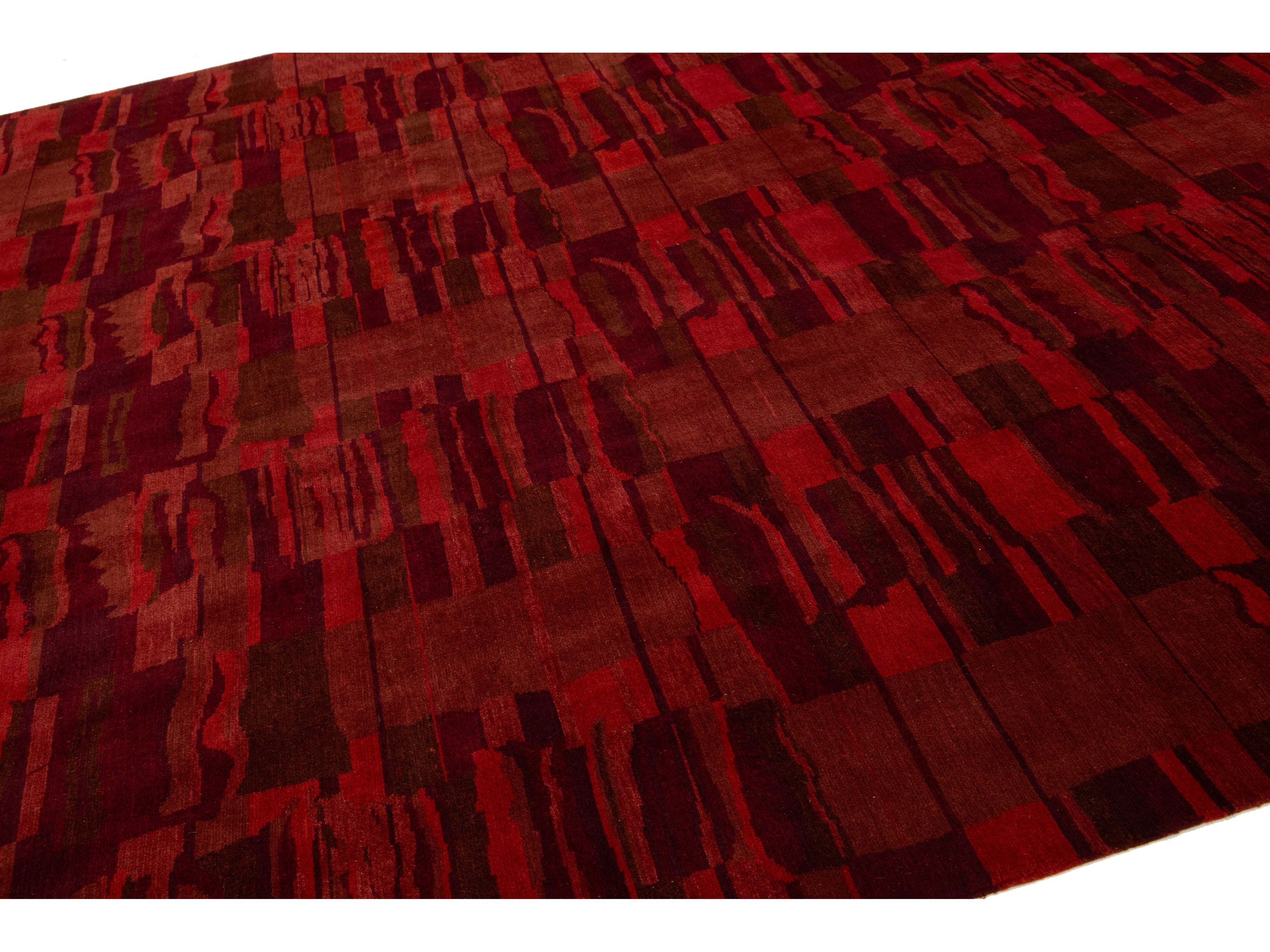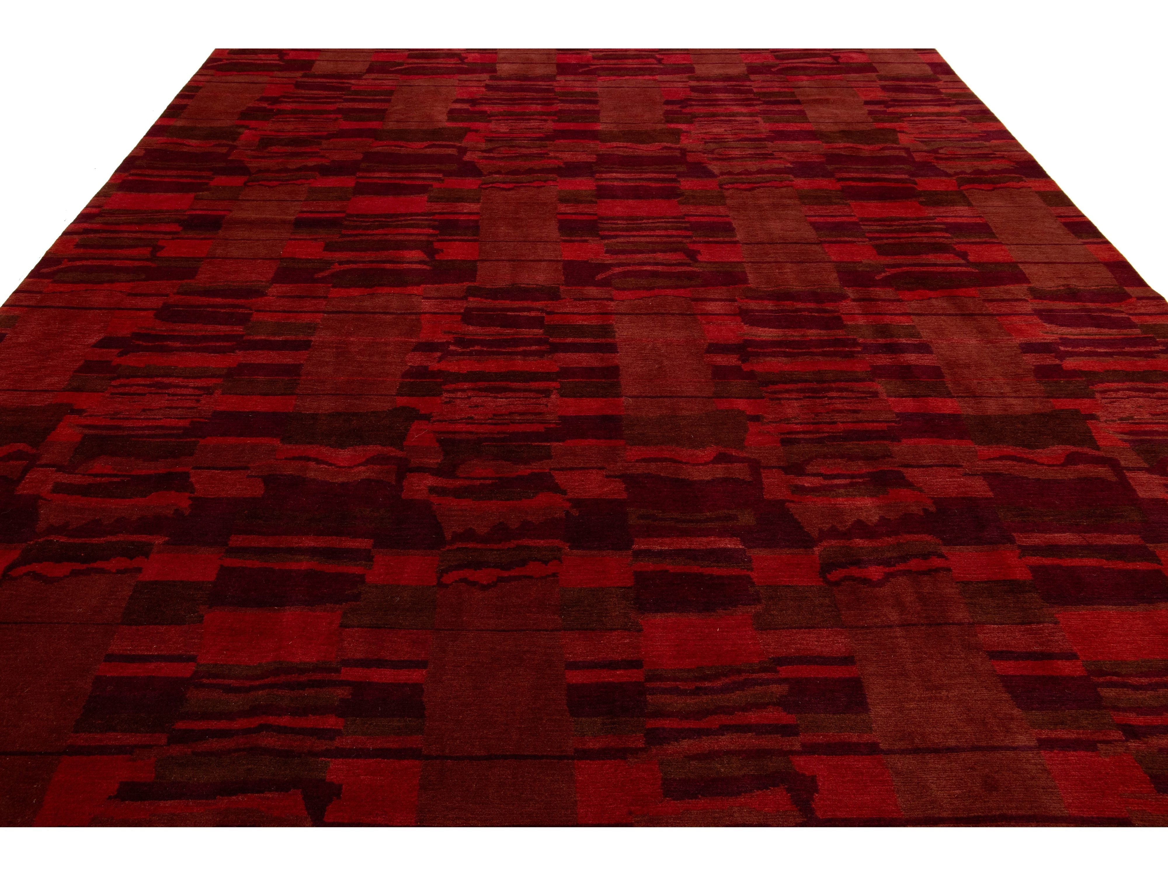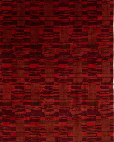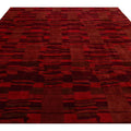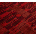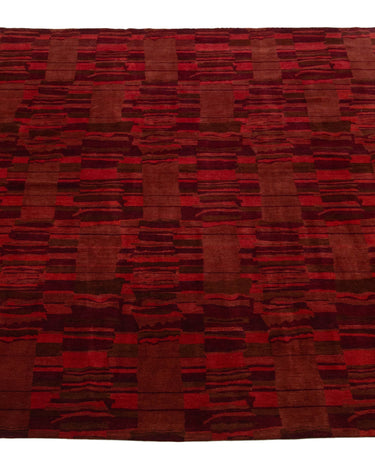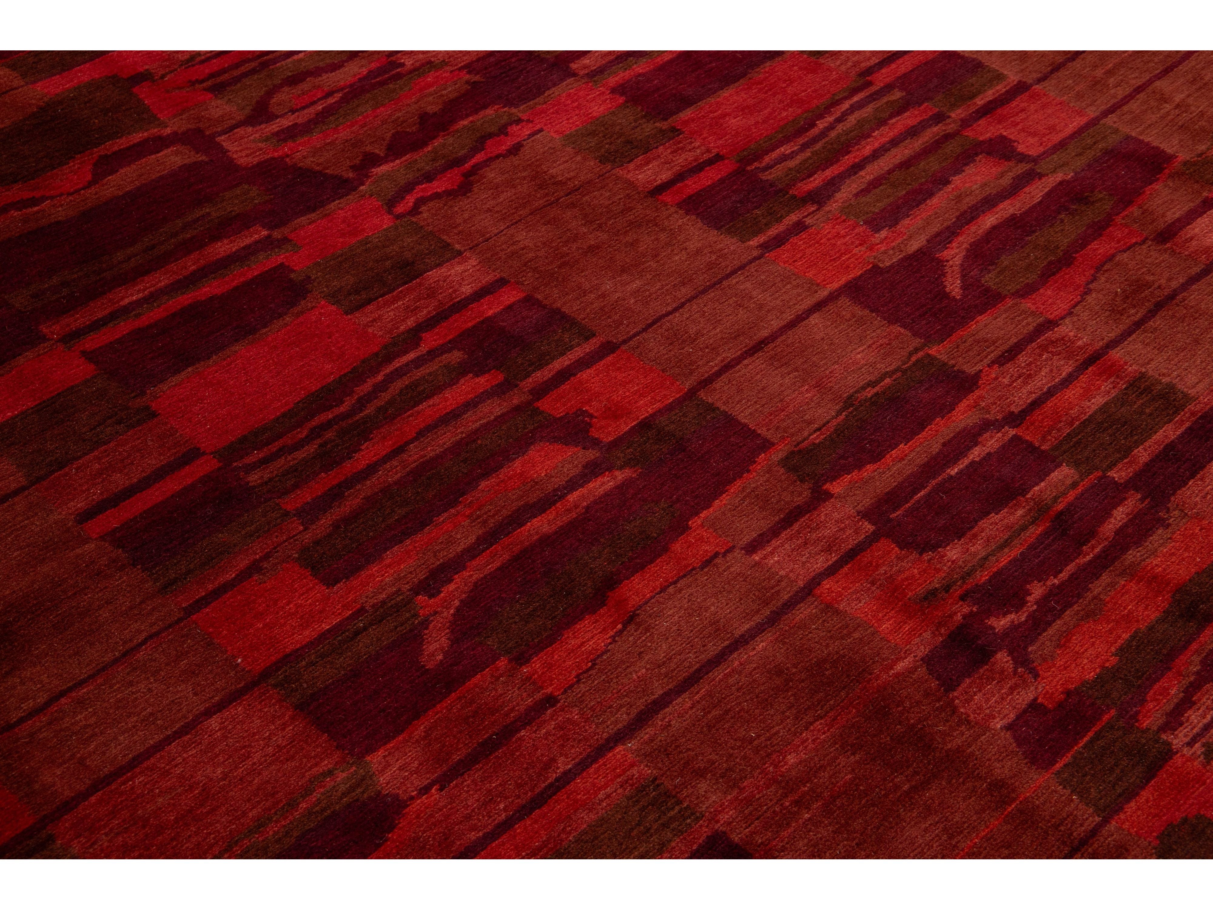 This contemporary Tibetan weave rug showcases a captivating abstract design. Made from premium Tibetan wool or silk, it highlights intricate details that reveal stunning shades of red, adding a vibrant touch to any space.