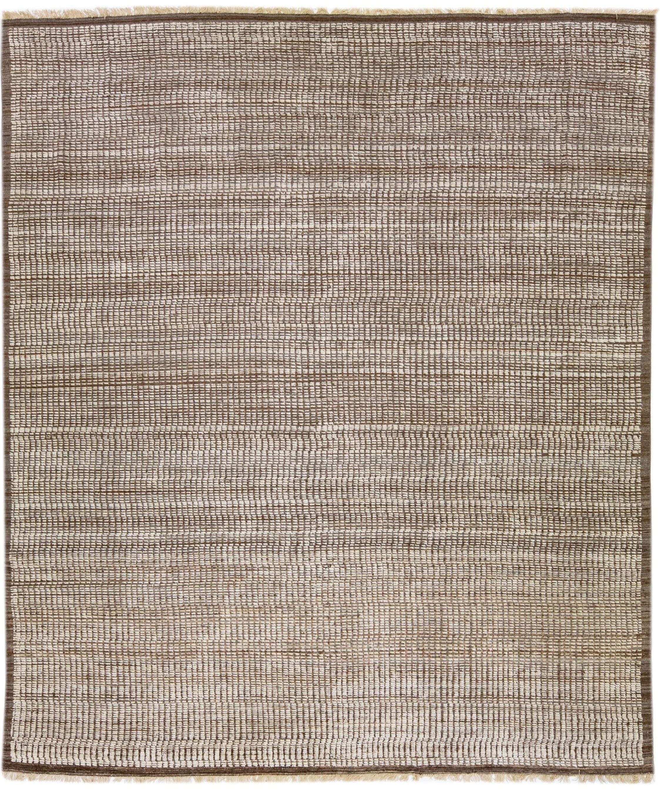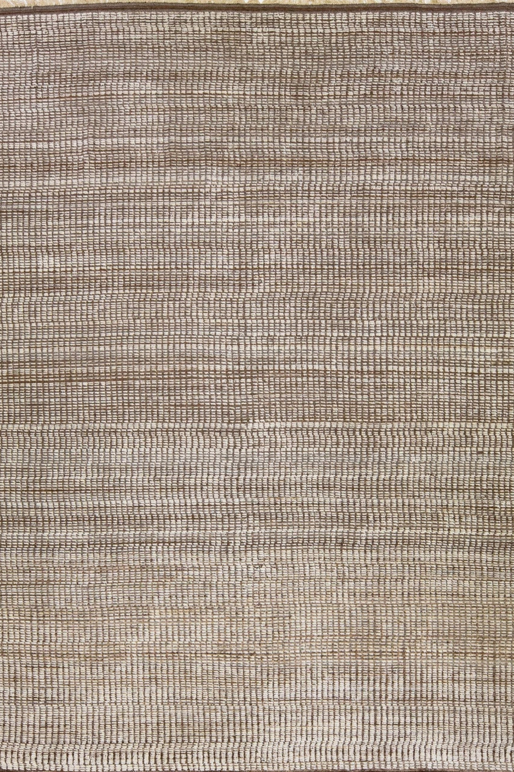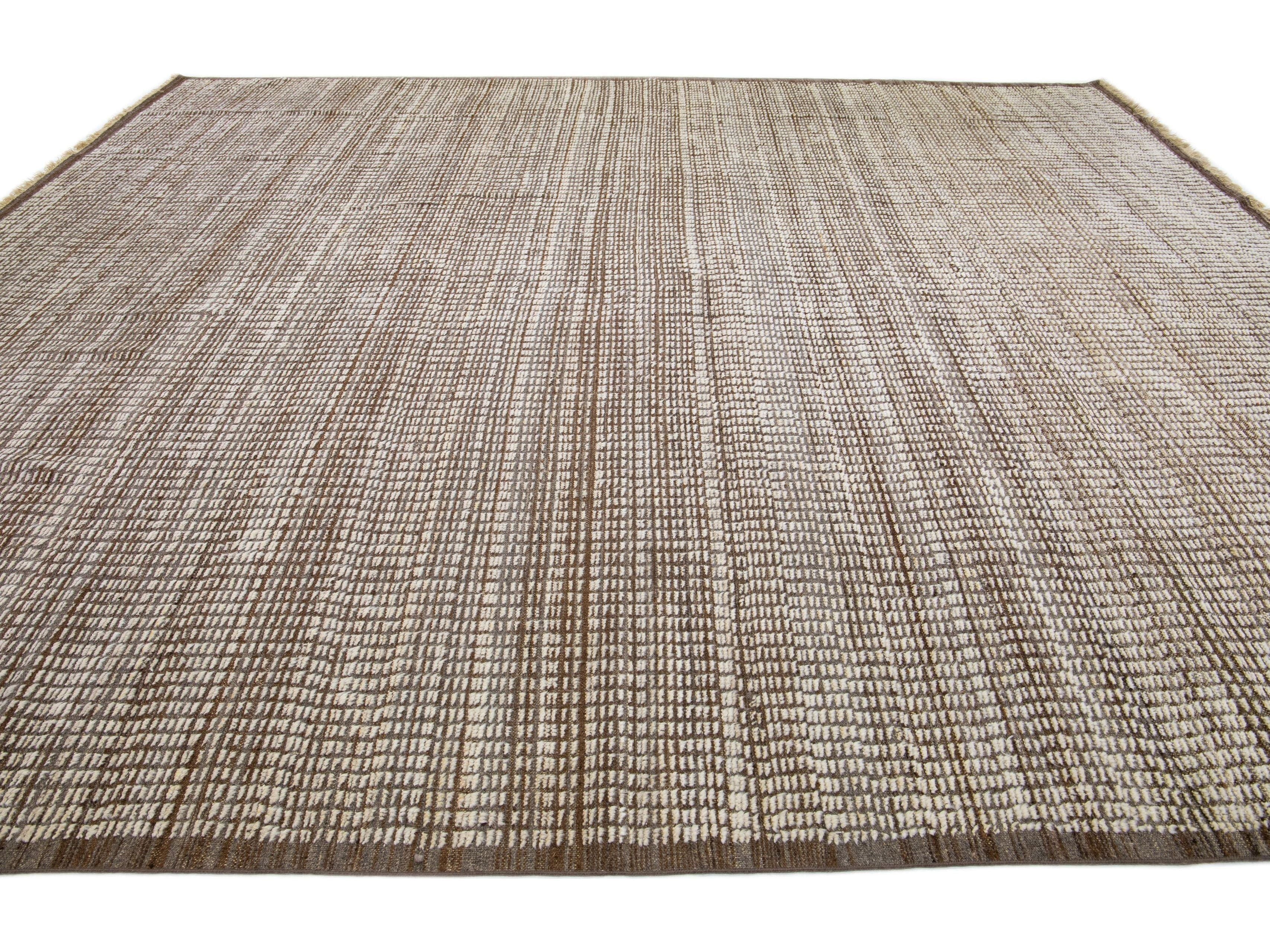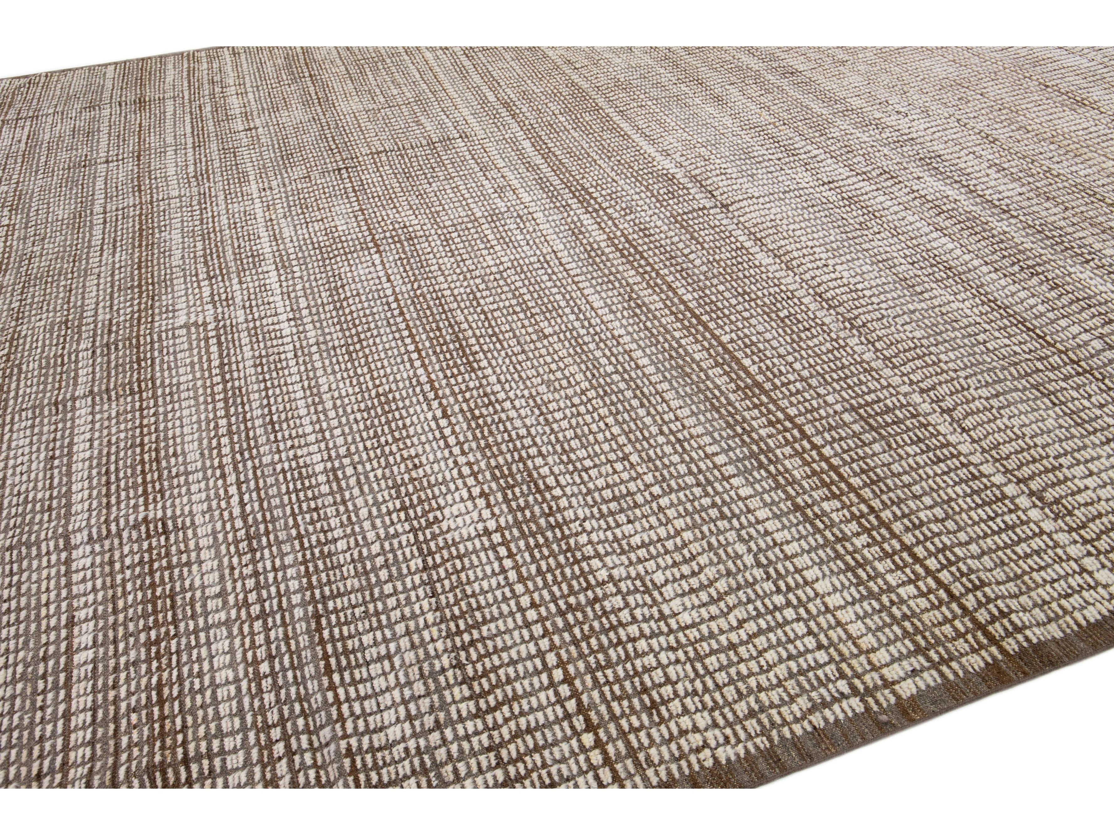 Beautiful modern Moroccan style hand-knotted wool rug with a brown field. This piece has a gorgeous subtle geometric pattern design.