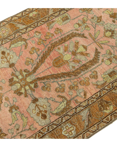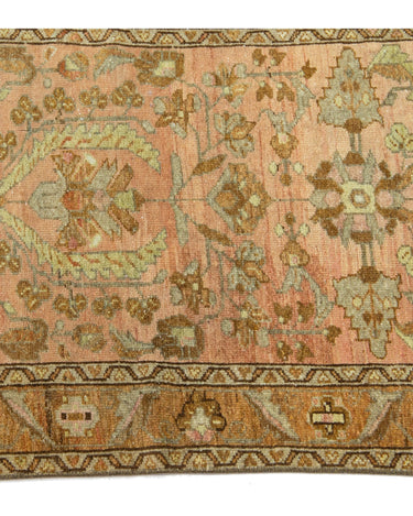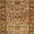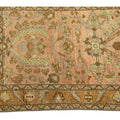 Beautiful antique Lilihan hand-knotted wool with a peach field. This Persian has blue borders with an all-over floral pattern design in brown and beige accents.