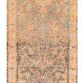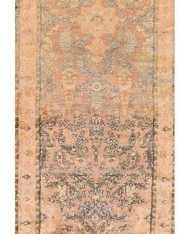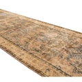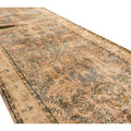 Beautiful hand-knotted vintage Persian Kerman wool runner. This rug has a light beige field with a traditional design in light teal blue.