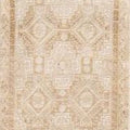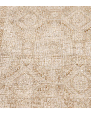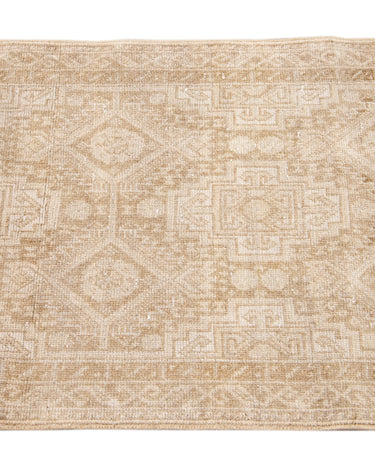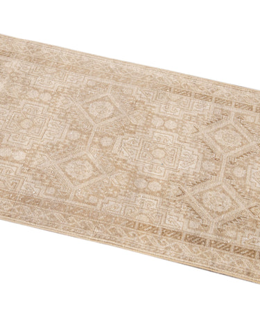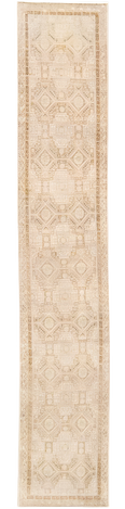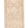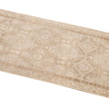 Beautiful antique Turkish Sivas runner rug with a beige field. This piece has an ivory accent in an all-over Tribal design.