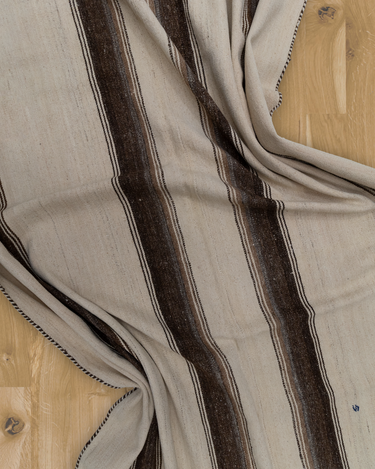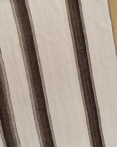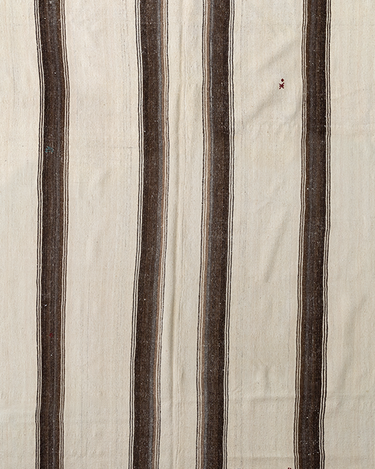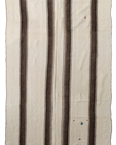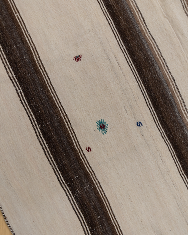 Traditional striped hemp Kilim with pops of color. The colorful ribbons and evil eyes are representative of wishes and symbols of good luck.