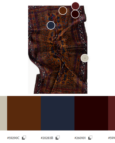 Colors: oxblood, copper, blue