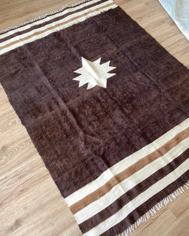 Luxurious rug made from angora goat mohair. These rugs are lightweight and soft underfoot. They can be used on the floor or as a throw.