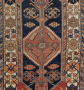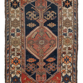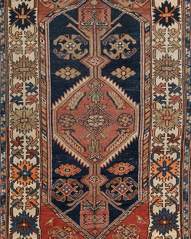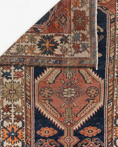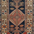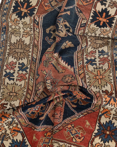 Beautiful antique wool on wool Kurdish rug with a soft pile and rich colors. The border features traditional life affirming symbols such as the rams horn (power, heroism).