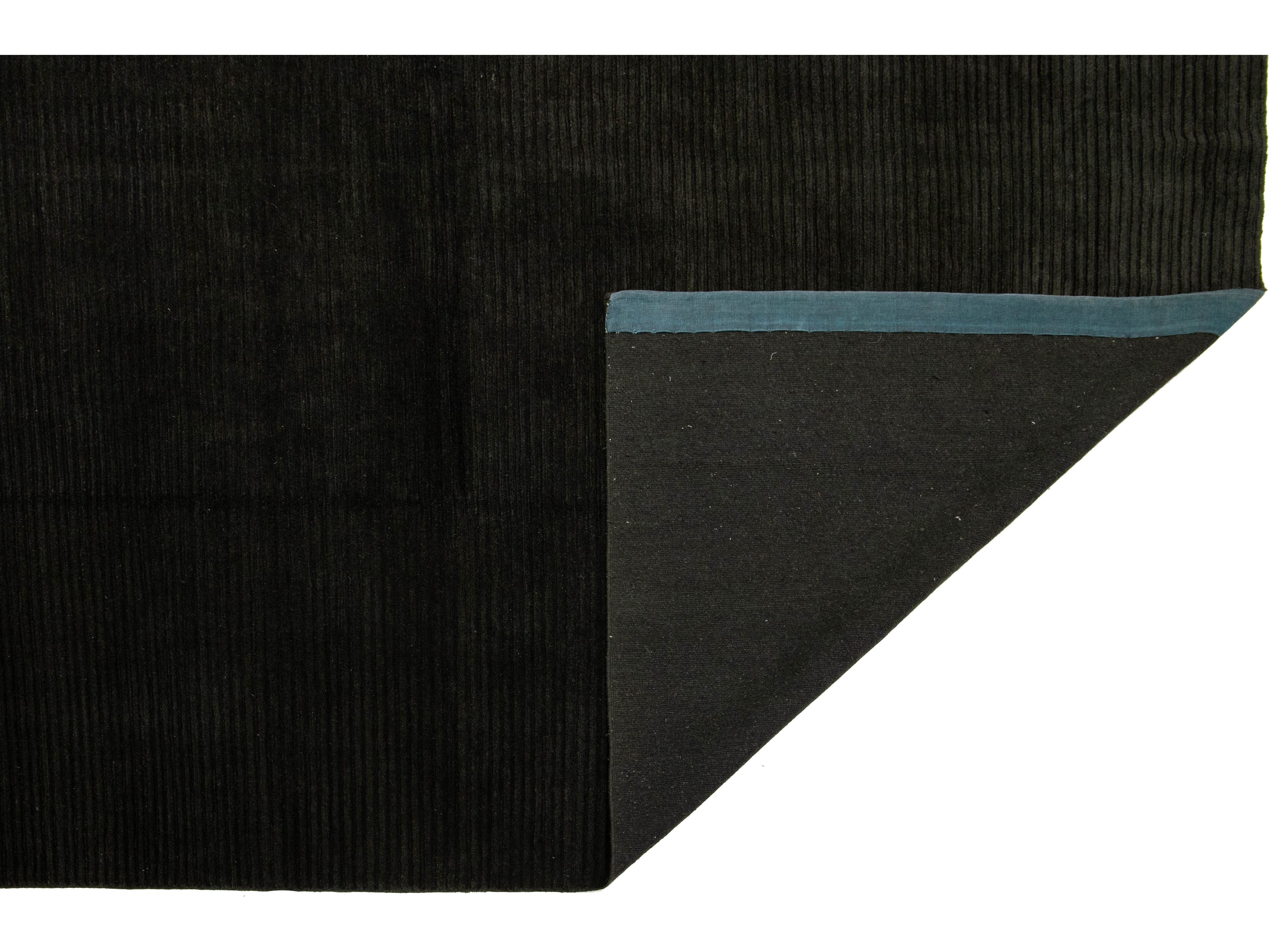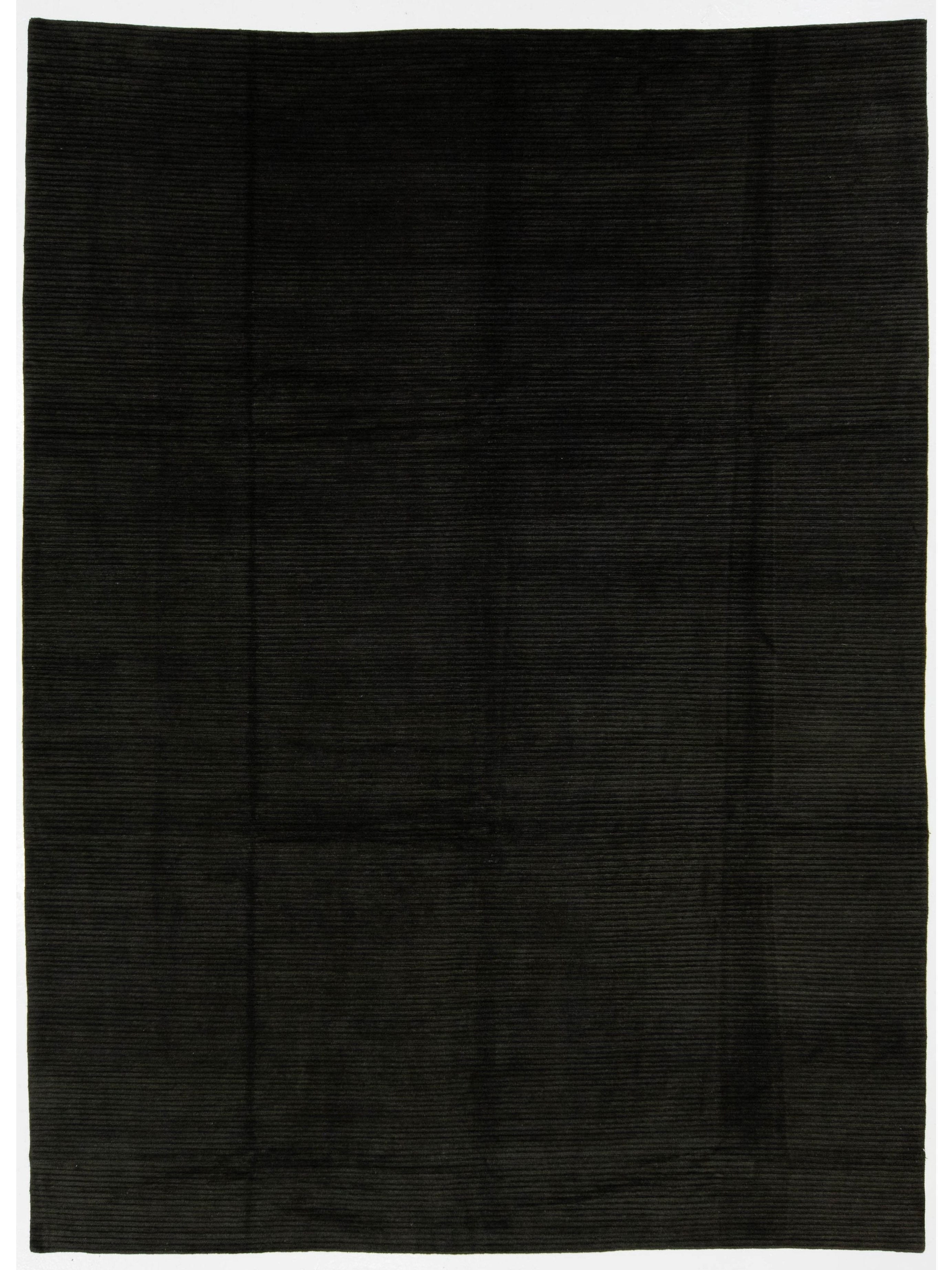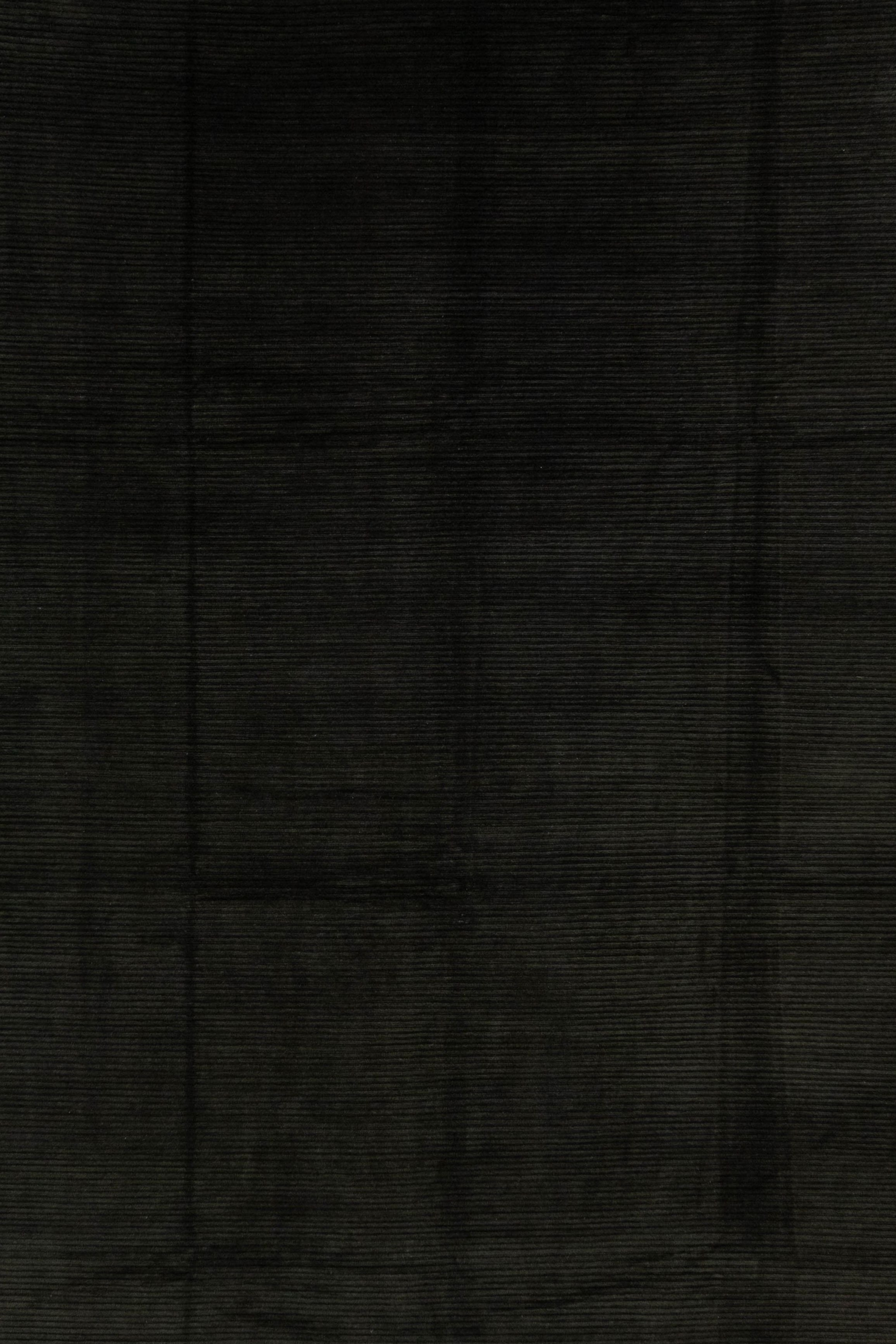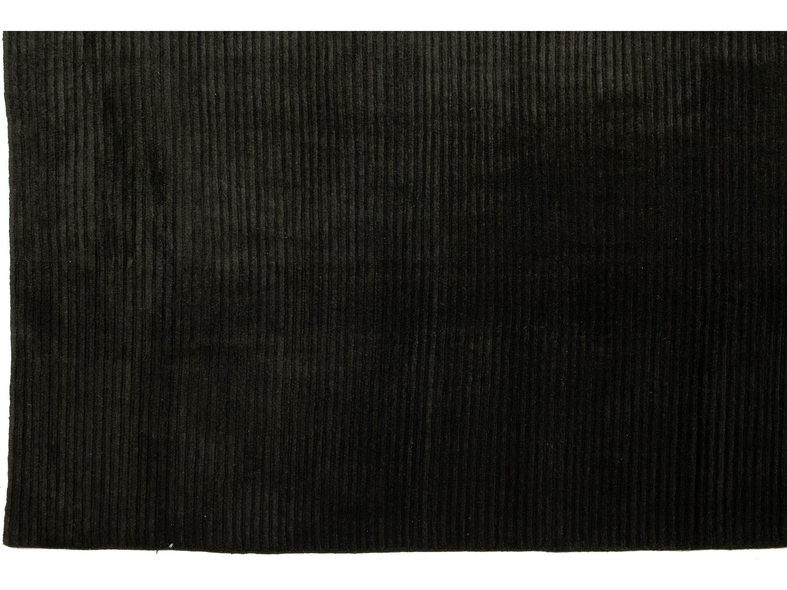 This modern Tibetan weave rug boasts a striking striped design. Crafted from high-quality Tibetan wool or silk, it features exquisite details that bring out a beautiful dark green color field.