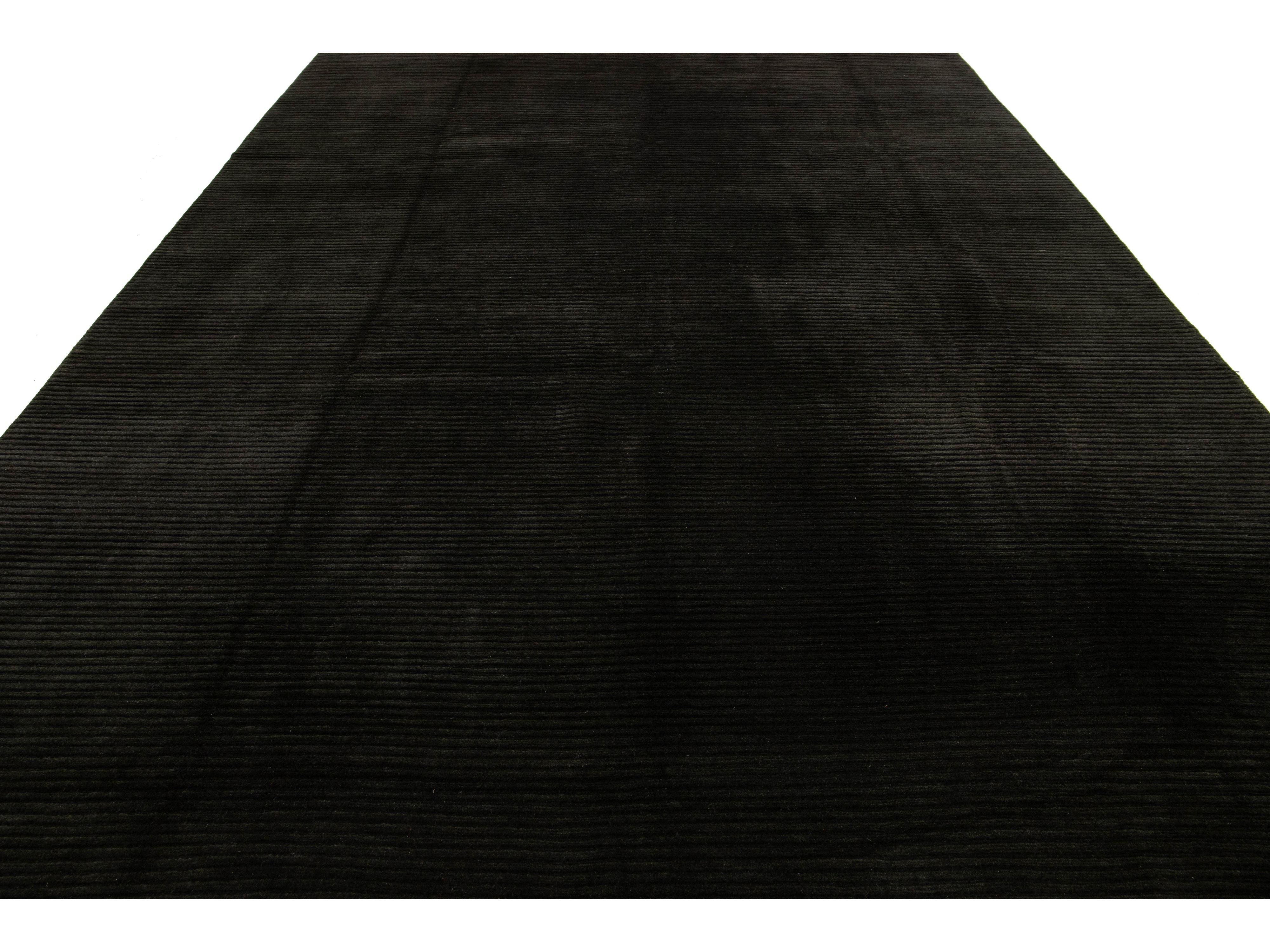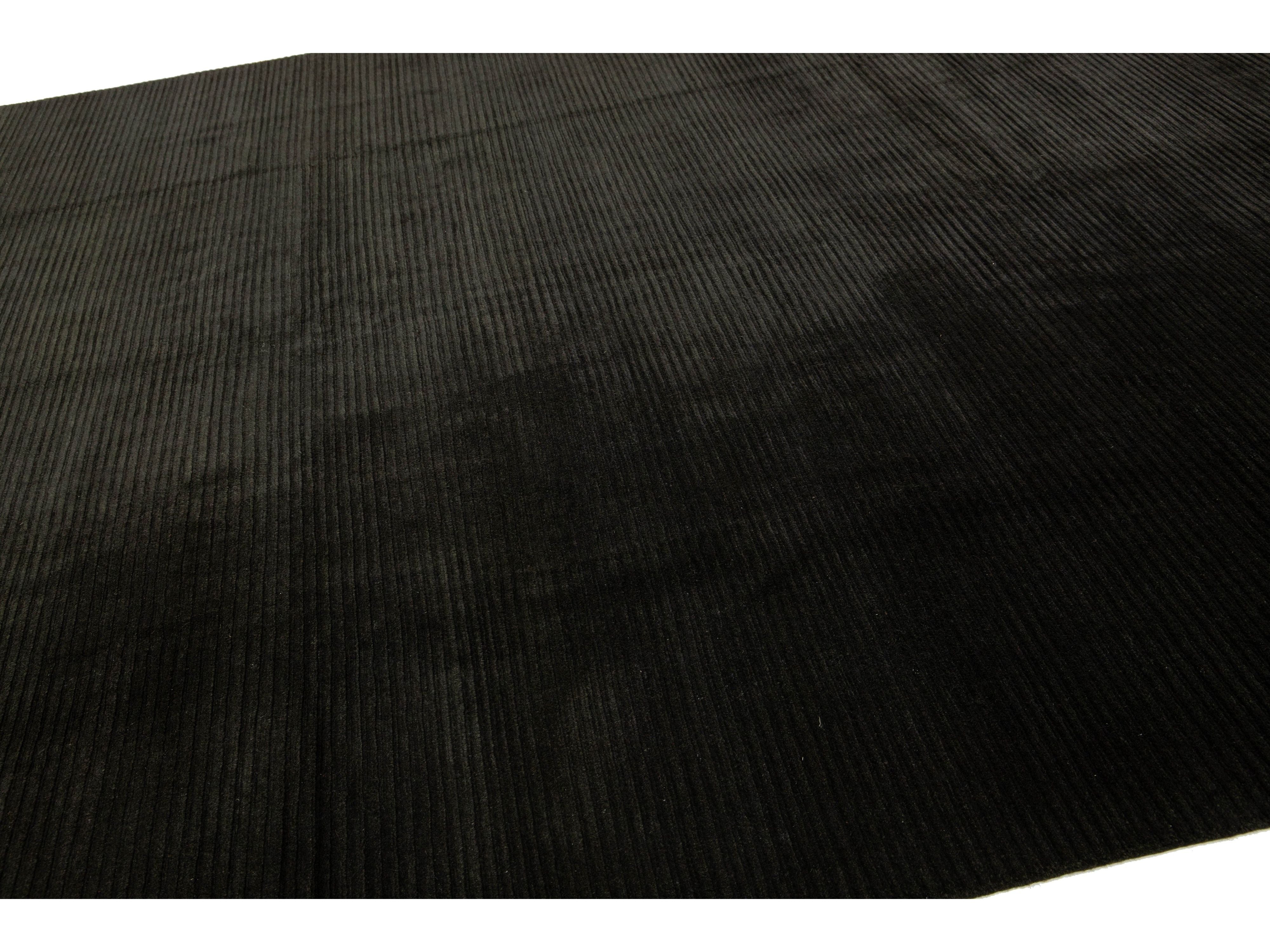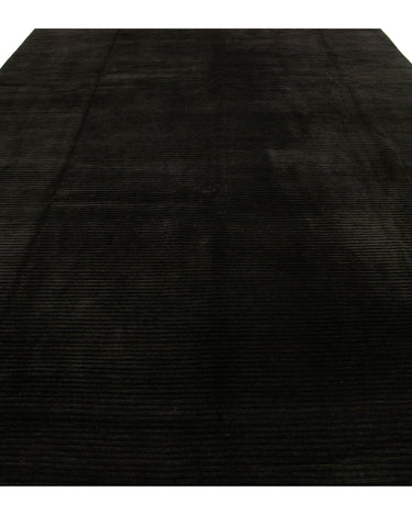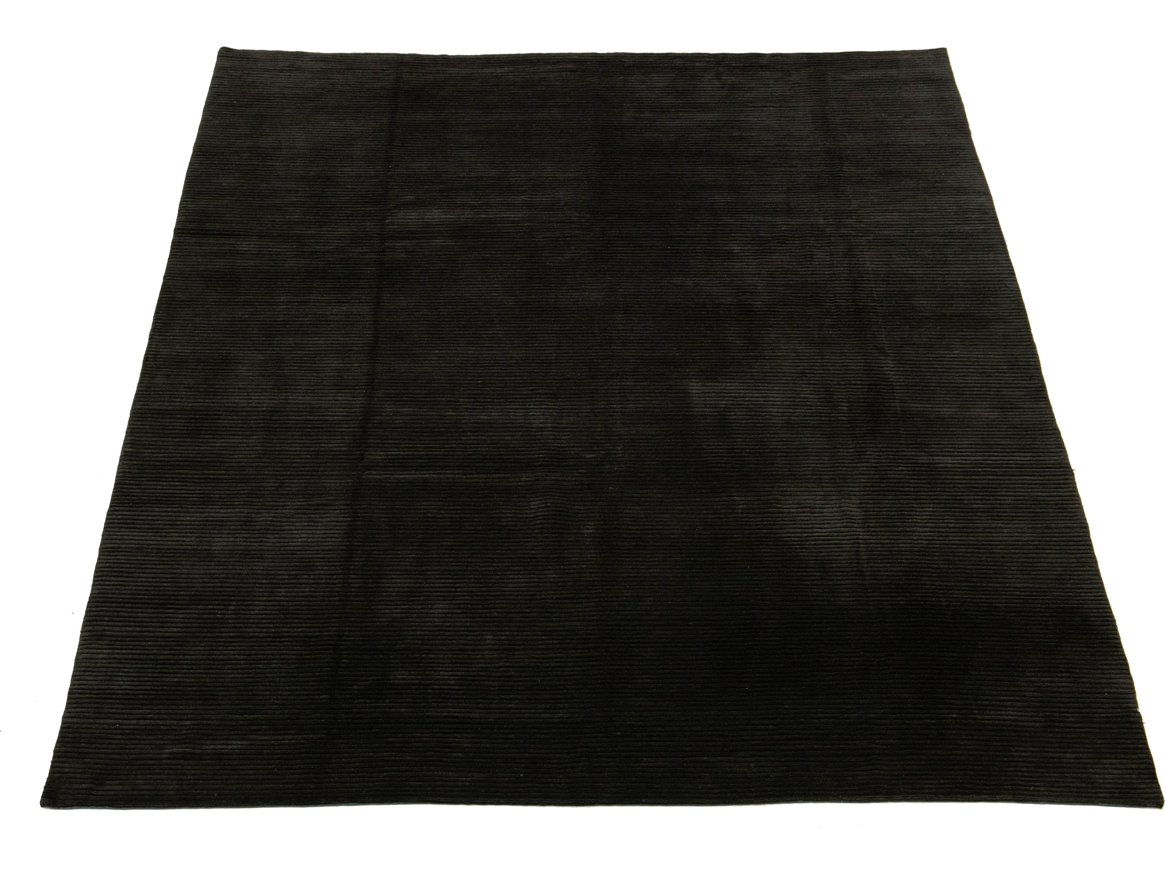 This modern Tibetan weave rug boasts a striking striped design. Crafted from high-quality Tibetan wool or silk, it features exquisite details that bring out a beautiful dark green color field.