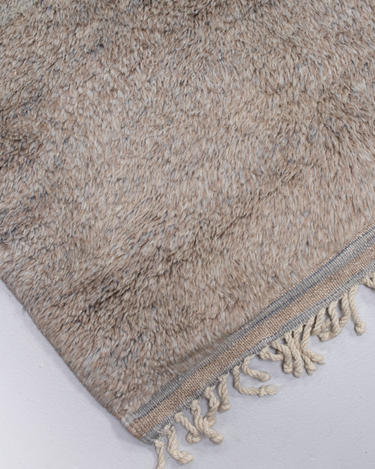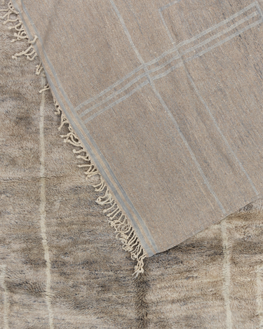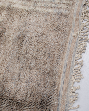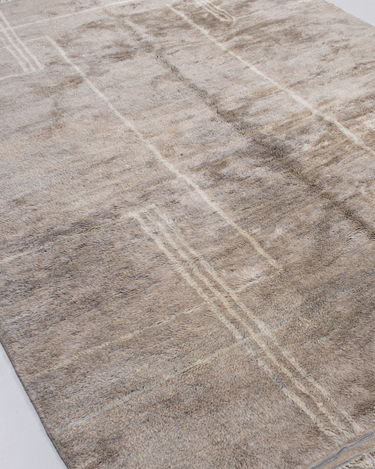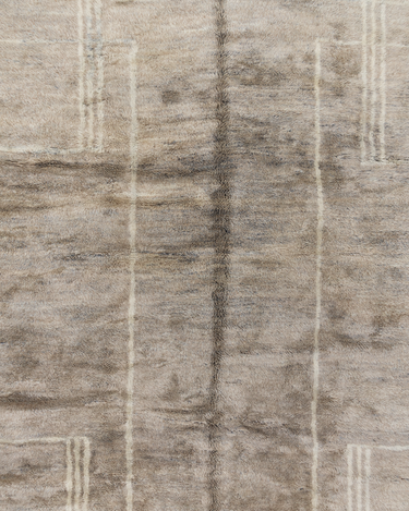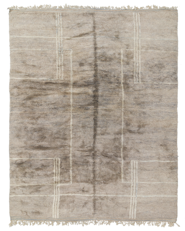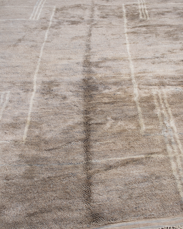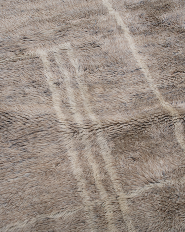 Soft, sculptural, and grounded in tradition, this newly made Moroccan rug is handwoven from 100% wool, offering an understated elegance in soft, earthy tones. Its subtle linear design adds structure without overpowering, making it a versatile piece for both modern and collected interiors.