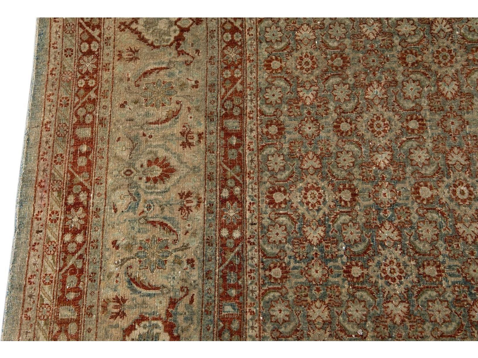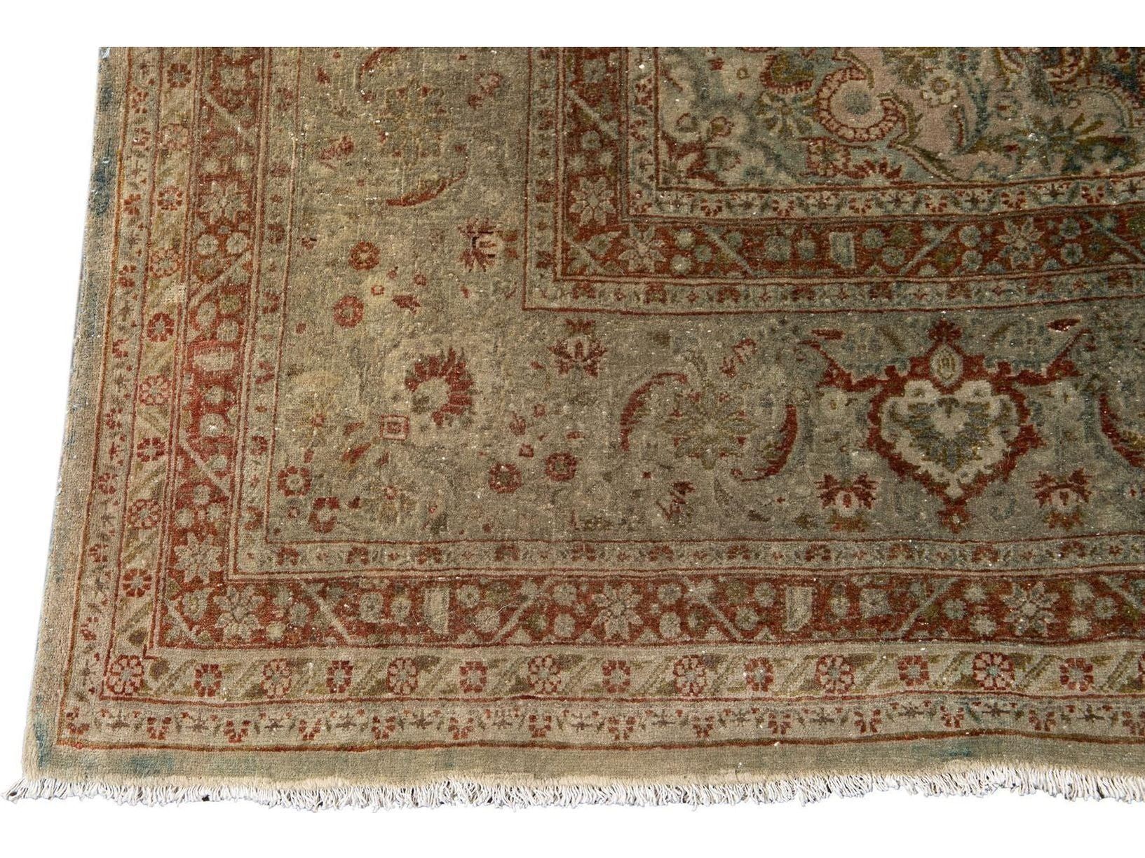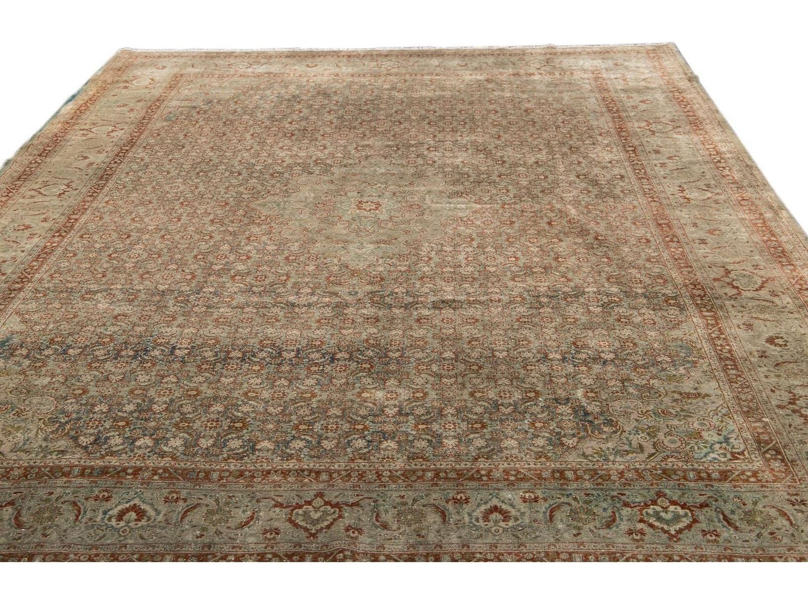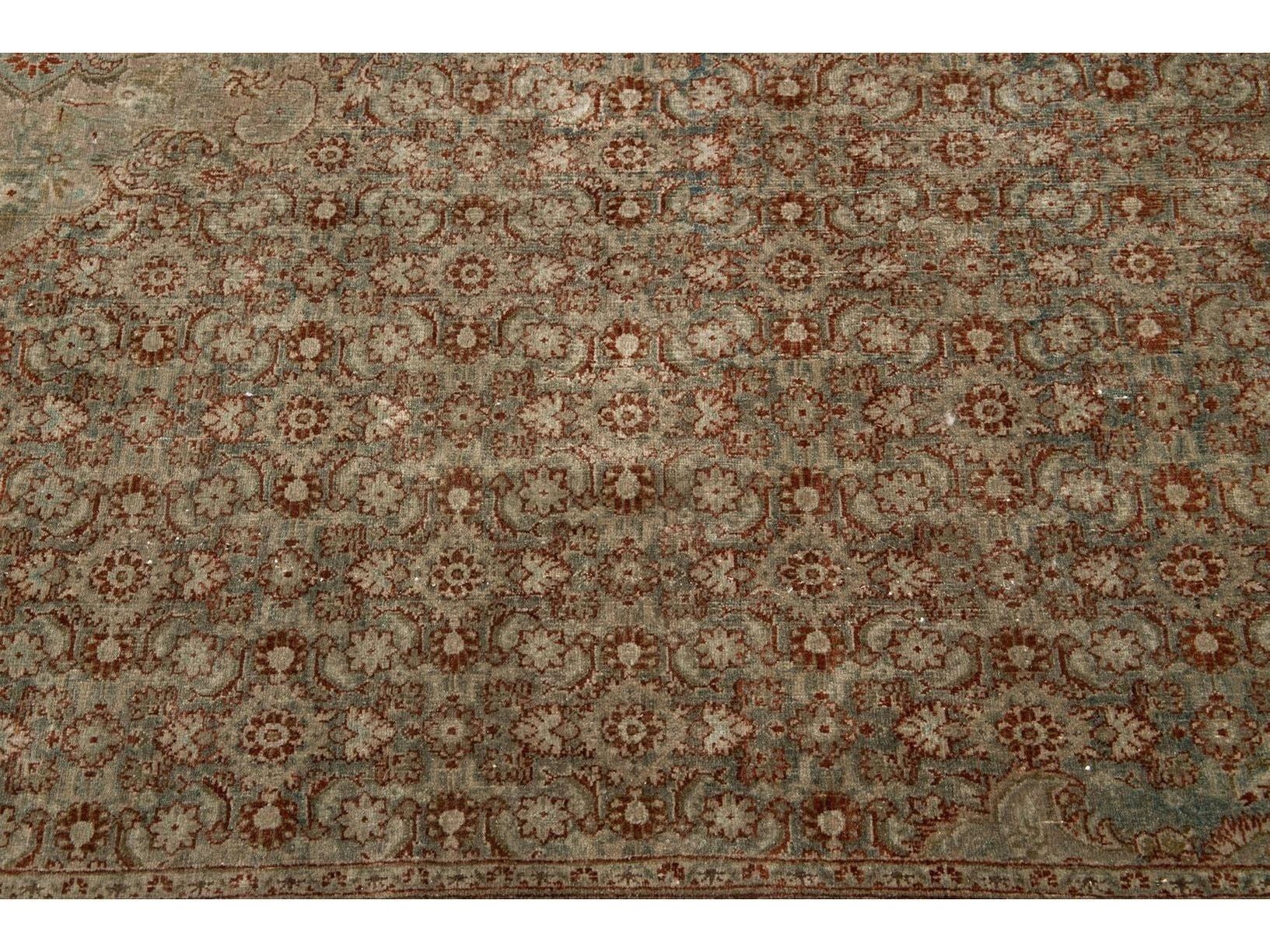 Beautiful Antique Persian Tabriz rug, hand knotted wool with a pale green field, rust and tan accents in an all-over Classic motif.
