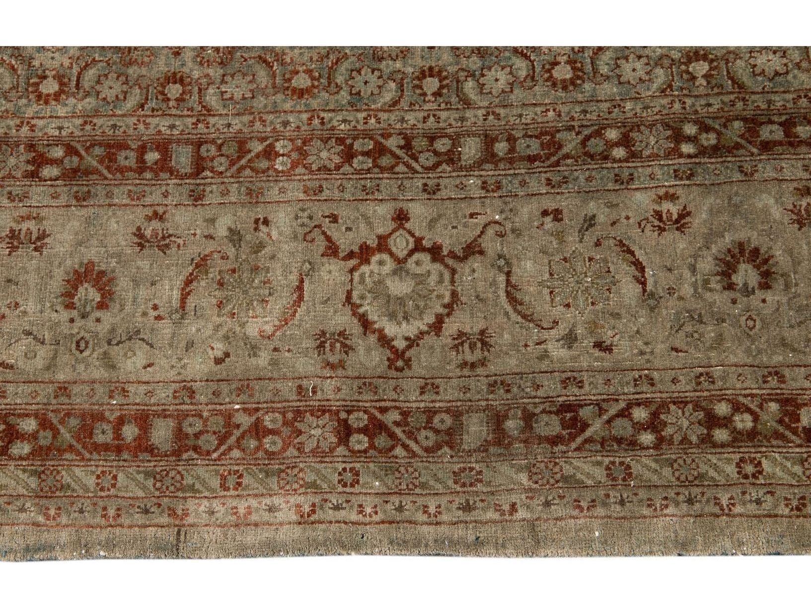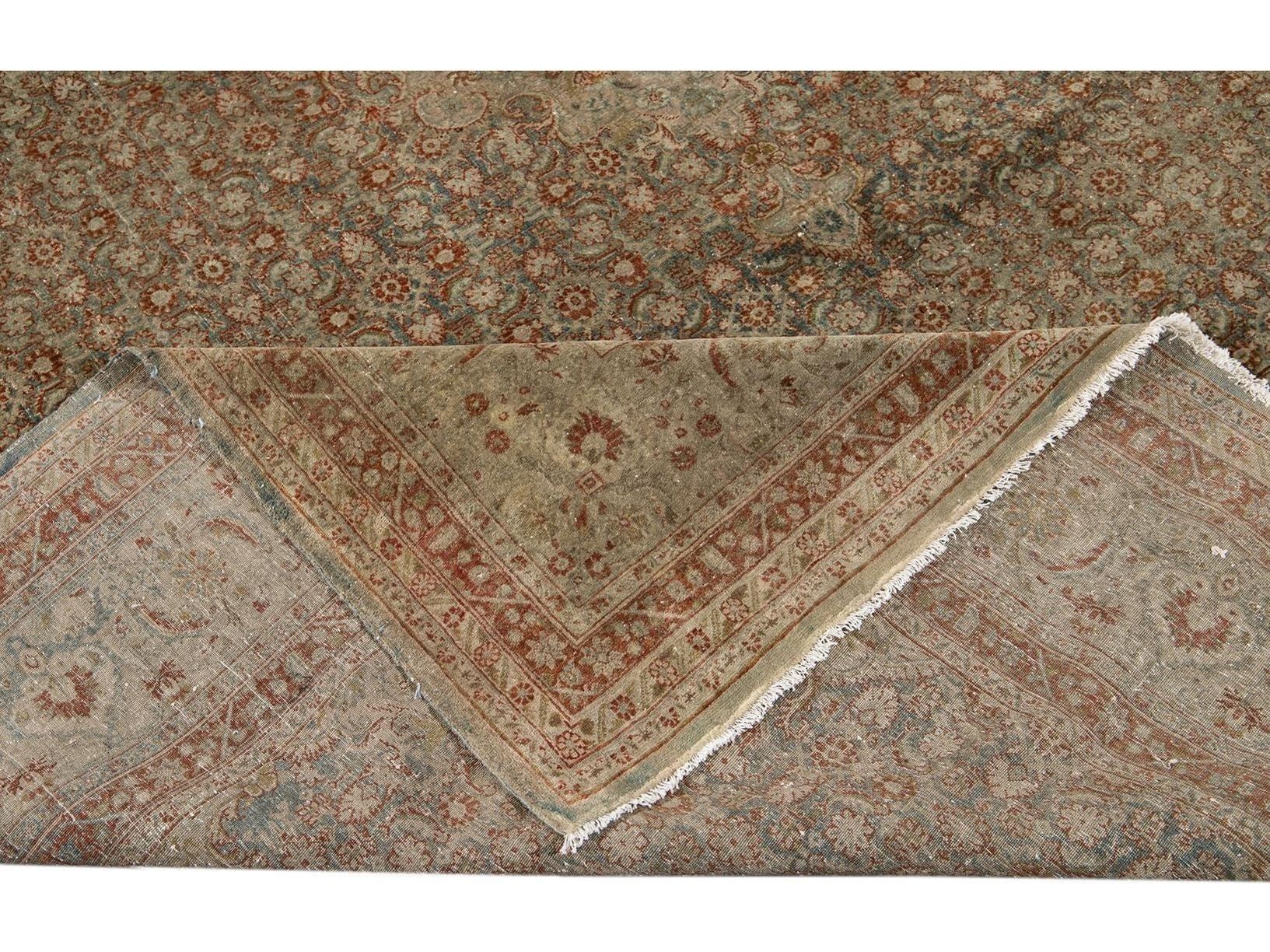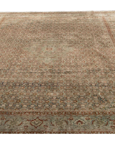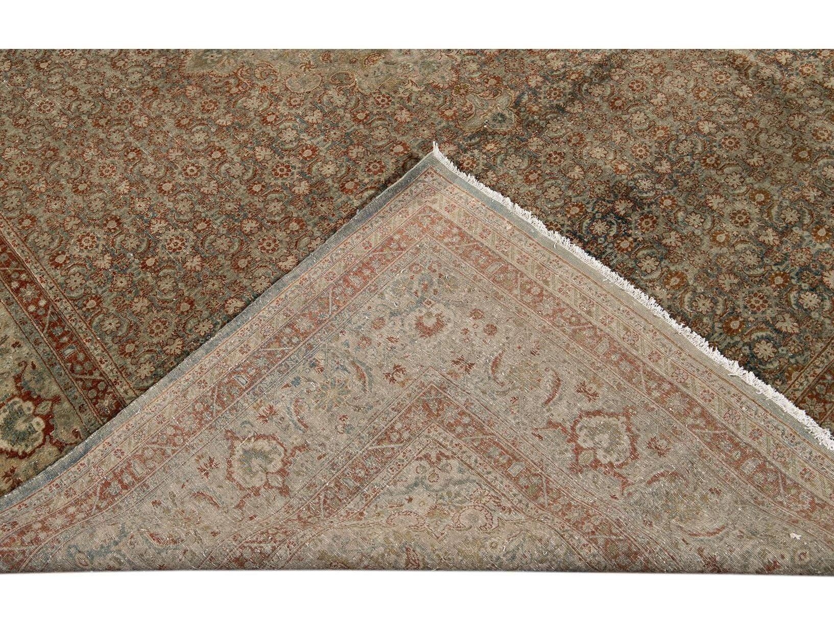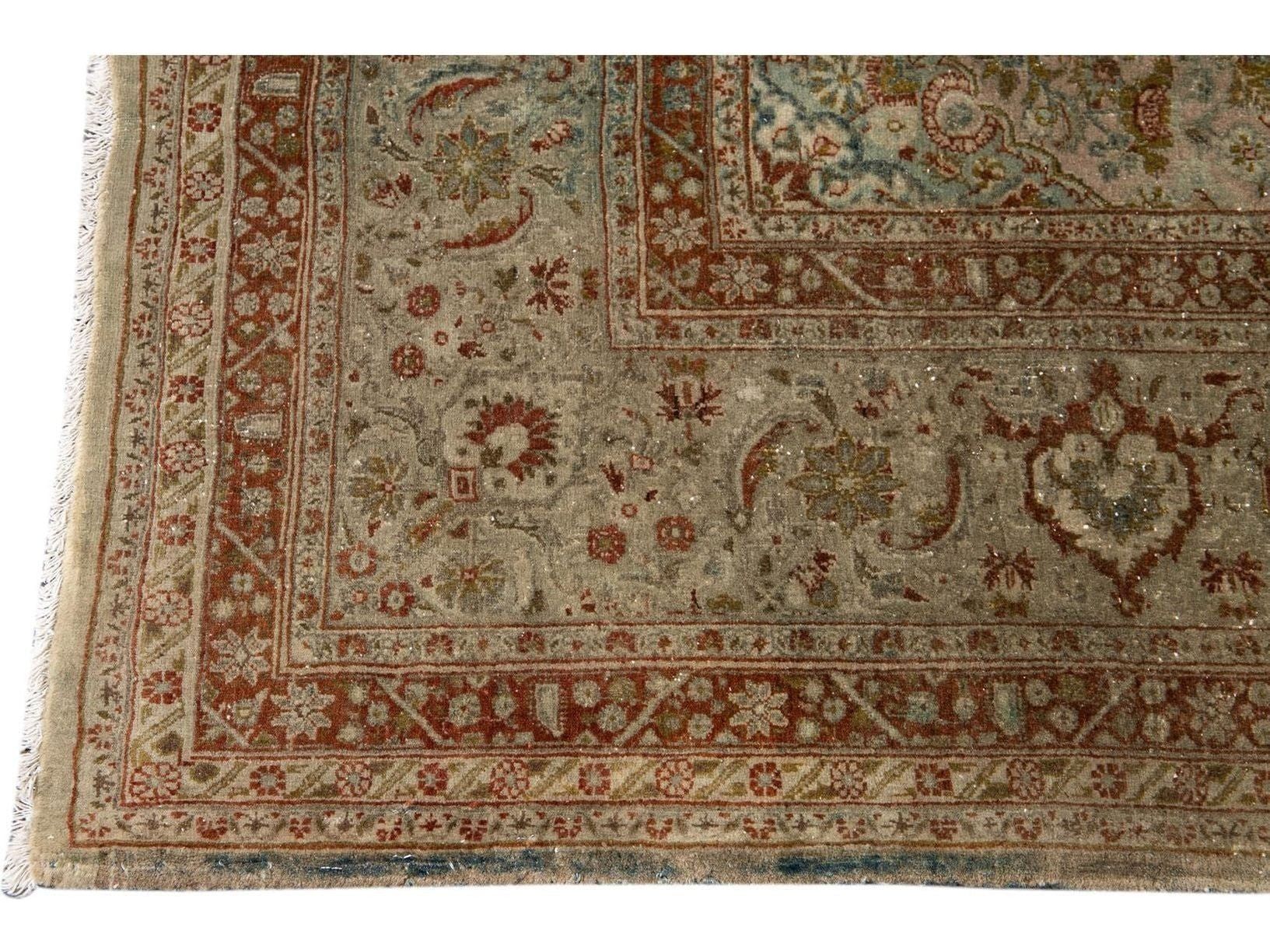 Beautiful Antique Persian Tabriz rug, hand knotted wool with a pale green field, rust and tan accents in an all-over Classic motif.