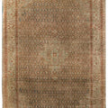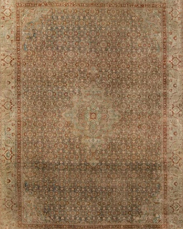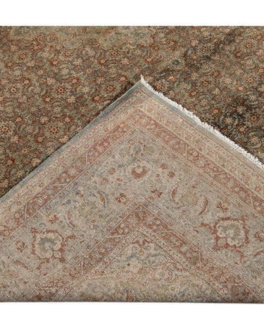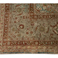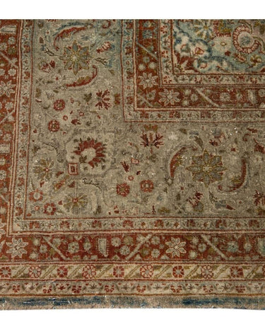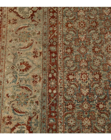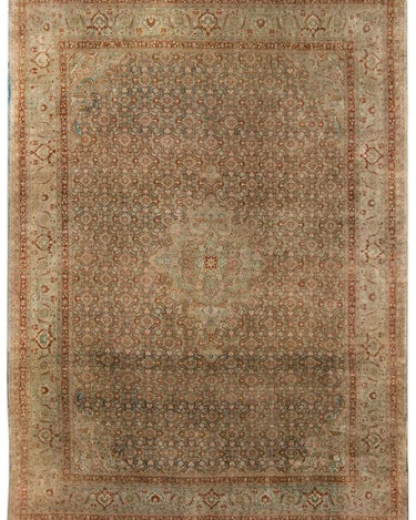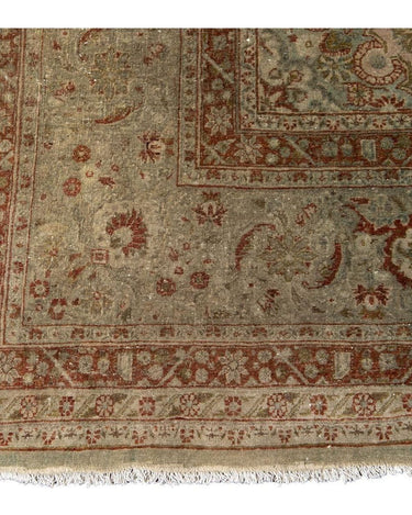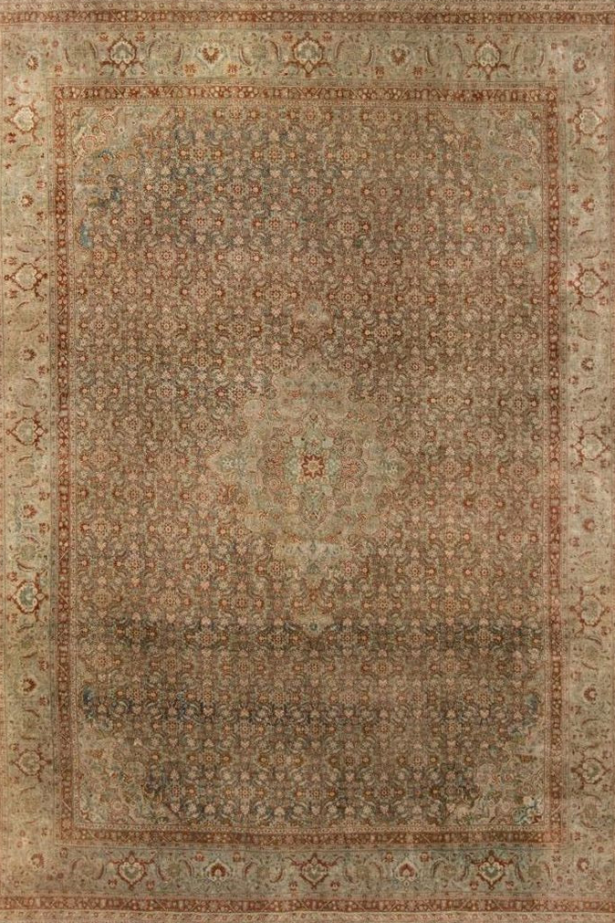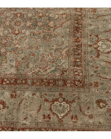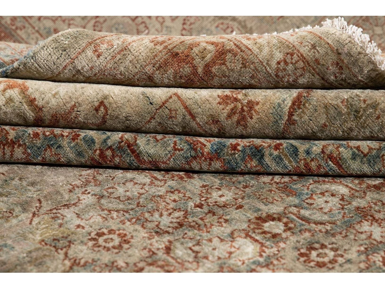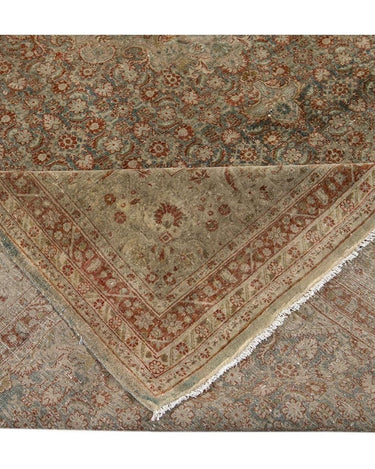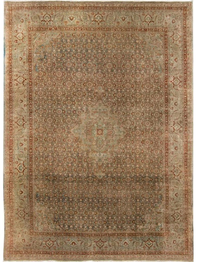 Beautiful Antique Persian Tabriz rug, hand knotted wool with a pale green field, rust and tan accents in an all-over Classic motif.